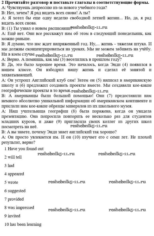 Готовая домашняя работа с ответами по Английскому языку за 10 класс Биболетова, Бабушис, Снежко Рабочая тетрадь Enjoy English Титул 2013 ФГОС - Section 1 2