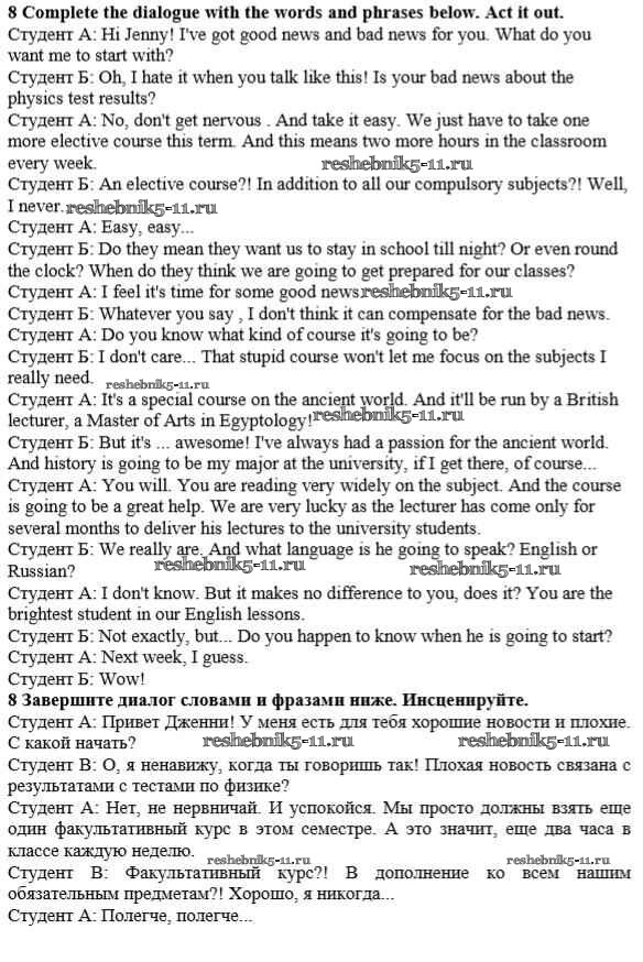 Готовая домашняя работа с ответами по Английскому языку за 10 класс Биболетова, Бабушис, Снежко Рабочая тетрадь Enjoy English Титул 2013 ФГОС - Section 1 8