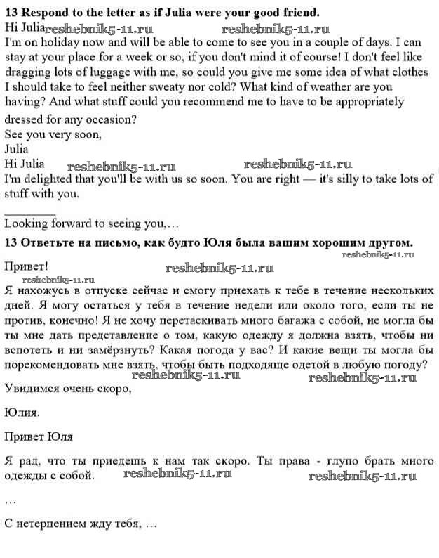 Готовая домашняя работа с ответами по Английскому языку за 10 класс Биболетова, Бабушис, Снежко Рабочая тетрадь Enjoy English Титул 2013 ФГОС - Section 2 13