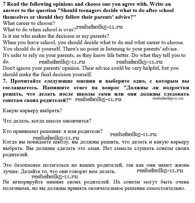 Готовая домашняя работа с ответами по Английскому языку за 10 класс Биболетова, Бабушис, Снежко Рабочая тетрадь Enjoy English Титул 2013 ФГОС - Section 4 7