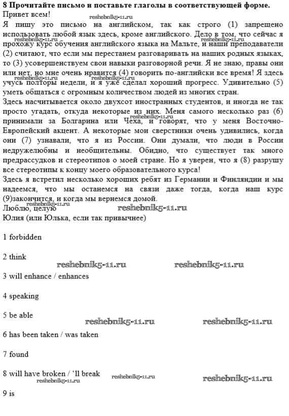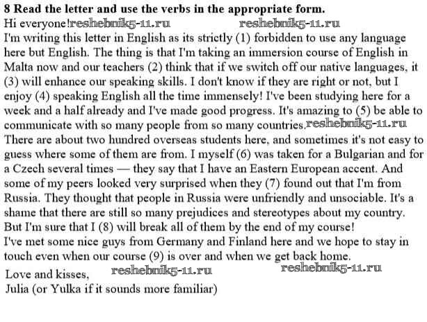 Готовая домашняя работа с ответами по Английскому языку за 10 класс Биболетова, Бабушис, Снежко Рабочая тетрадь Enjoy English Титул 2013 ФГОС - Section 4 8