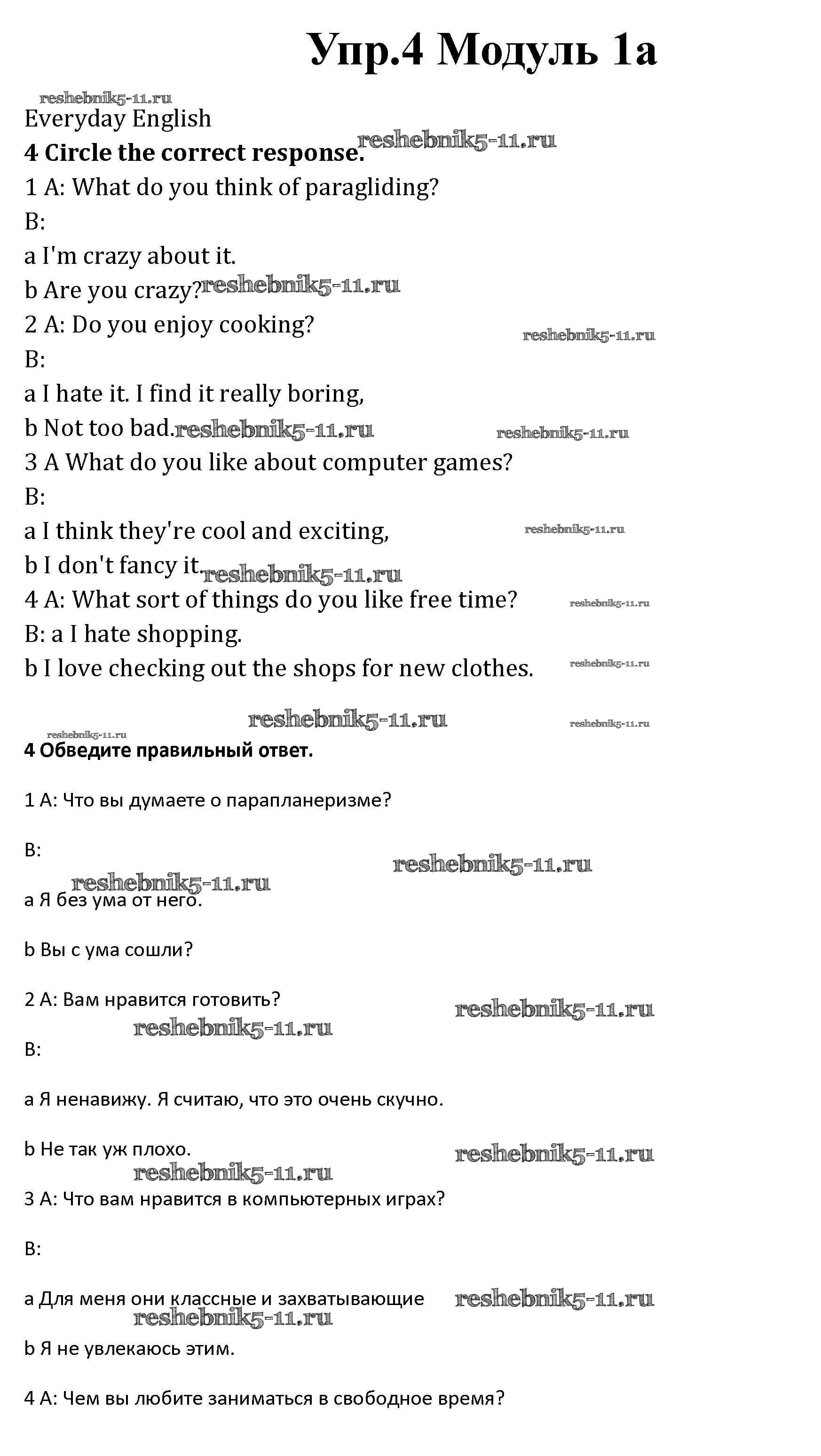 Готовая домашняя работа с ответами по Английскому языку за 10 класс Афанасьева, Дули, Михеева, Оби, Эванс Рабочая тетрадь Spotlight Базовый уровень Просвещение 2015 ФГОС - Часть 1a 4
