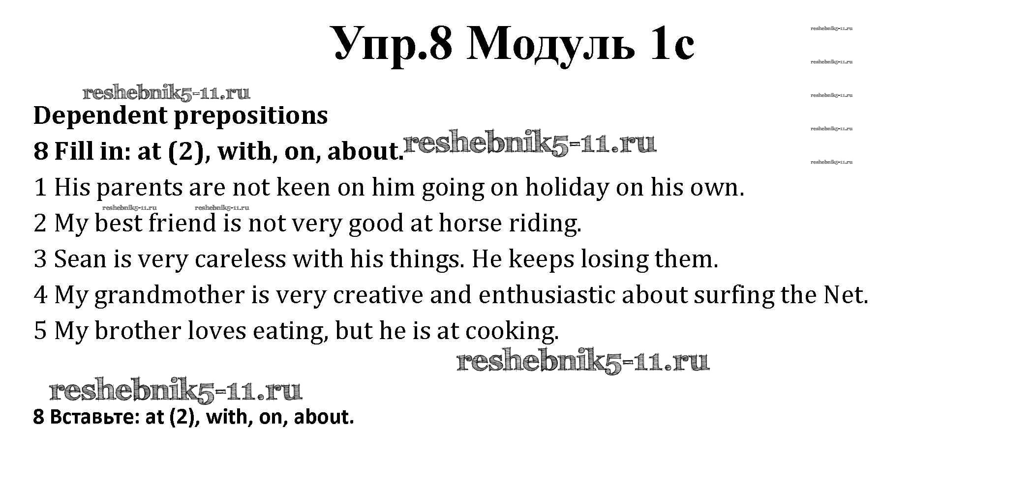 Готовая домашняя работа с ответами по Английскому языку за 10 класс Афанасьева, Дули, Михеева, Оби, Эванс Рабочая тетрадь Spotlight Базовый уровень Просвещение 2015 ФГОС - Часть 1c 8