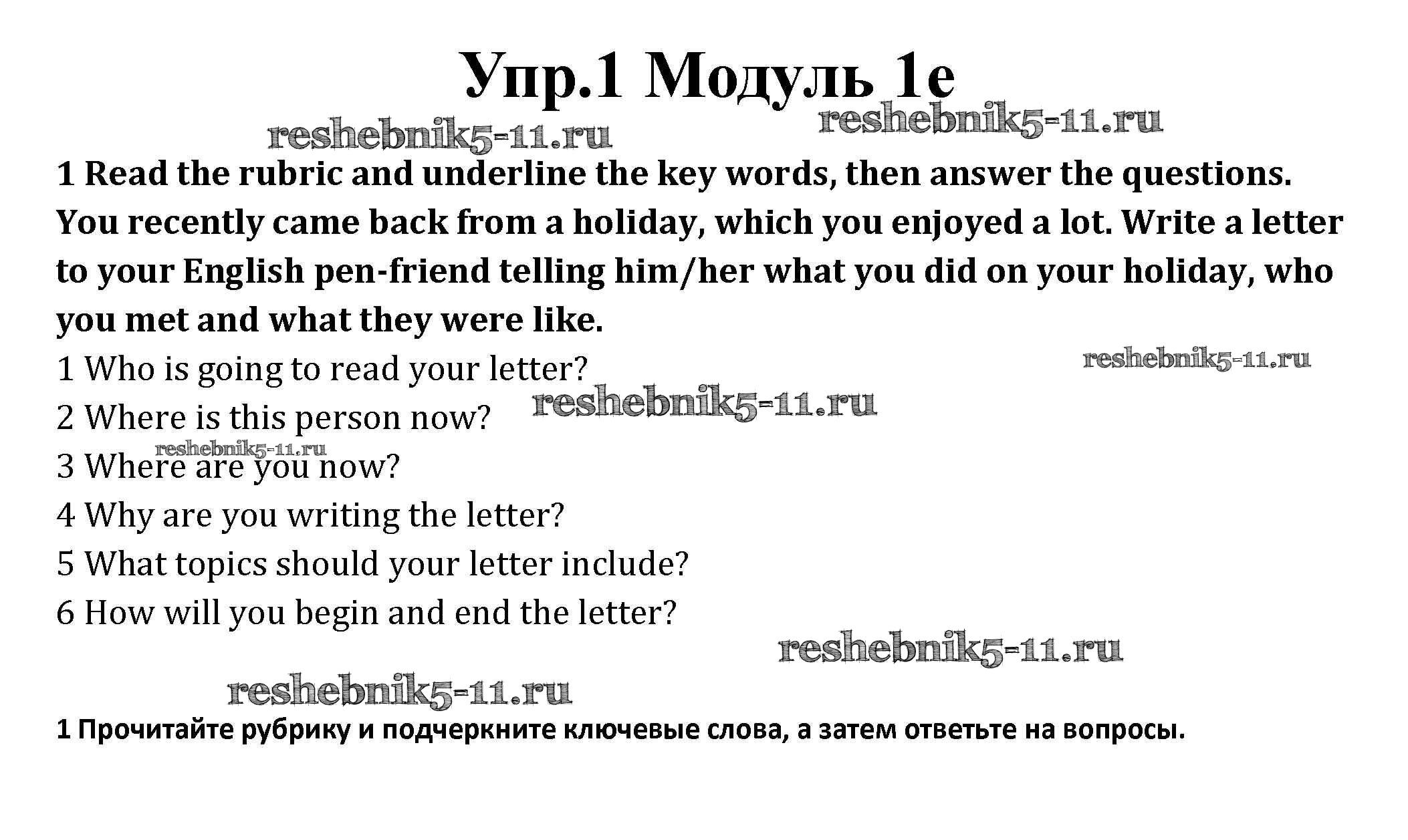 Готовая домашняя работа с ответами по Английскому языку за 10 класс Афанасьева, Дули, Михеева, Оби, Эванс Рабочая тетрадь Spotlight Базовый уровень Просвещение 2015 ФГОС - Часть 1e 1