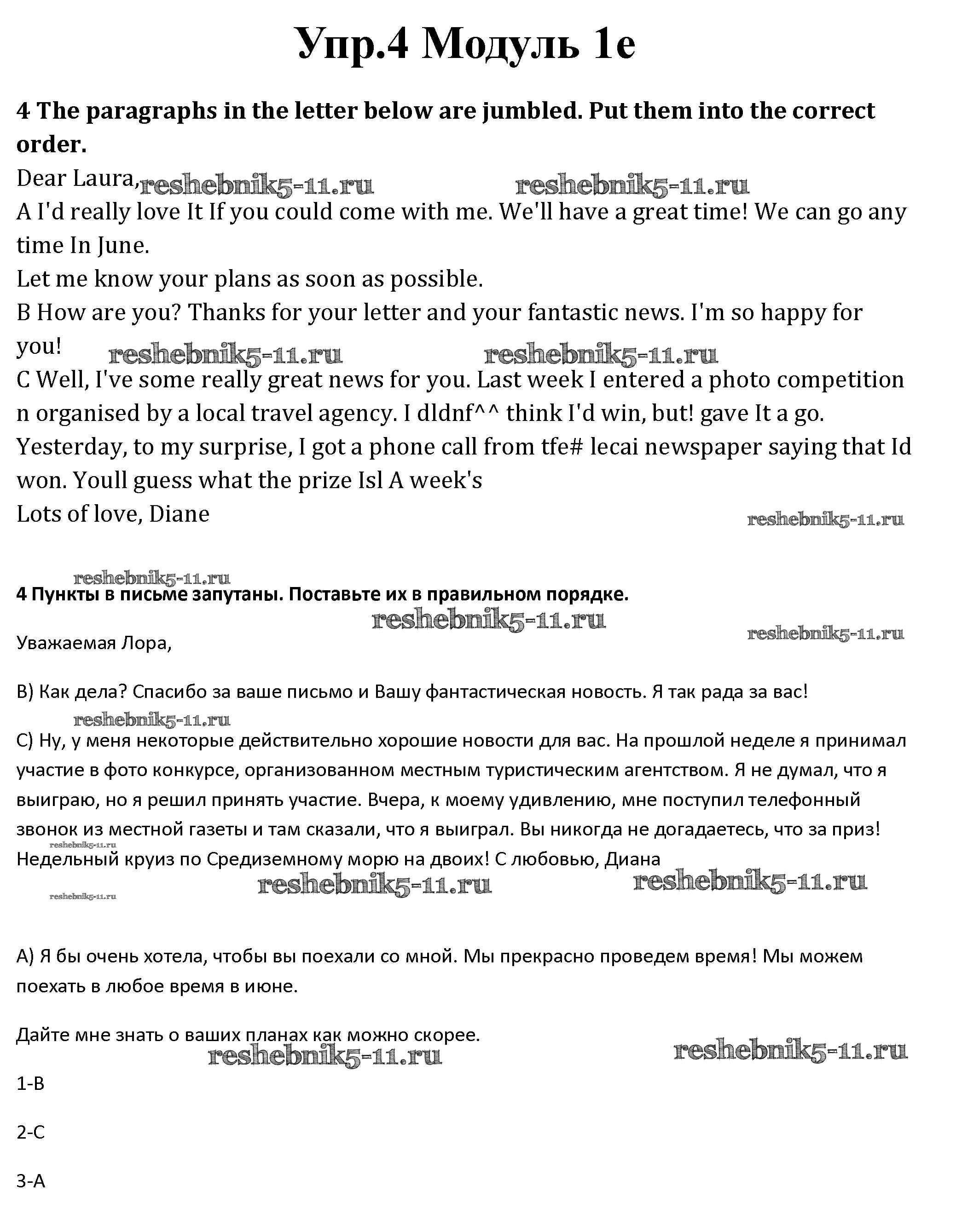 Готовая домашняя работа с ответами по Английскому языку за 10 класс Афанасьева, Дули, Михеева, Оби, Эванс Рабочая тетрадь Spotlight Базовый уровень Просвещение 2015 ФГОС - Часть 1e 4