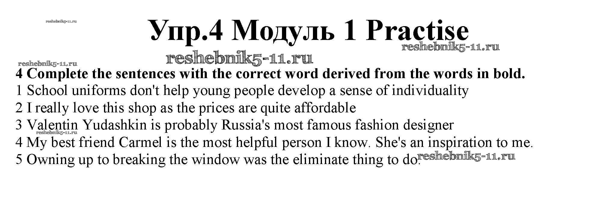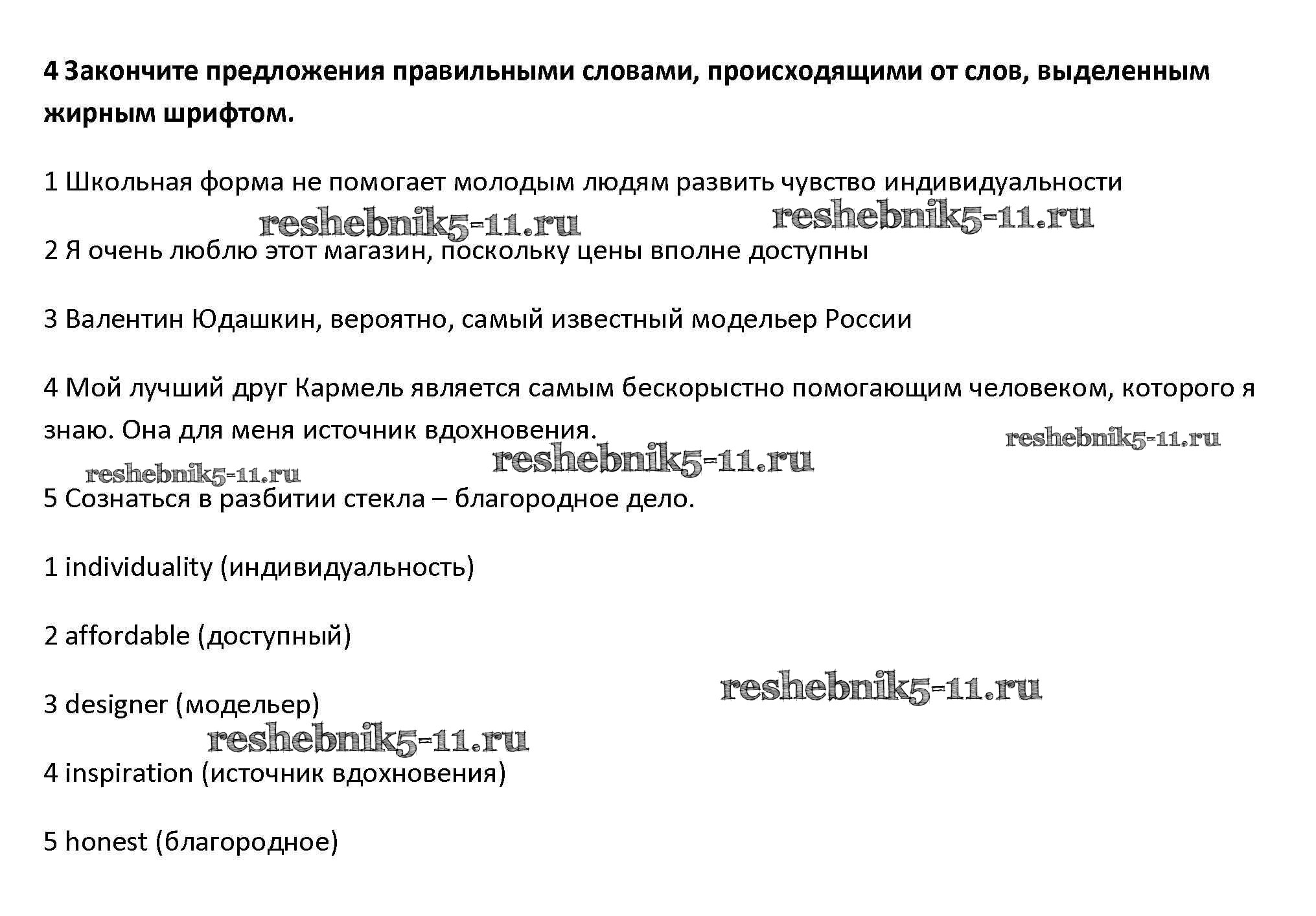 Готовая домашняя работа с ответами по Английскому языку за 10 класс Афанасьева, Дули, Михеева, Оби, Эванс Рабочая тетрадь Spotlight Базовый уровень Просвещение 2015 ФГОС - Vocabulary Practice 4
