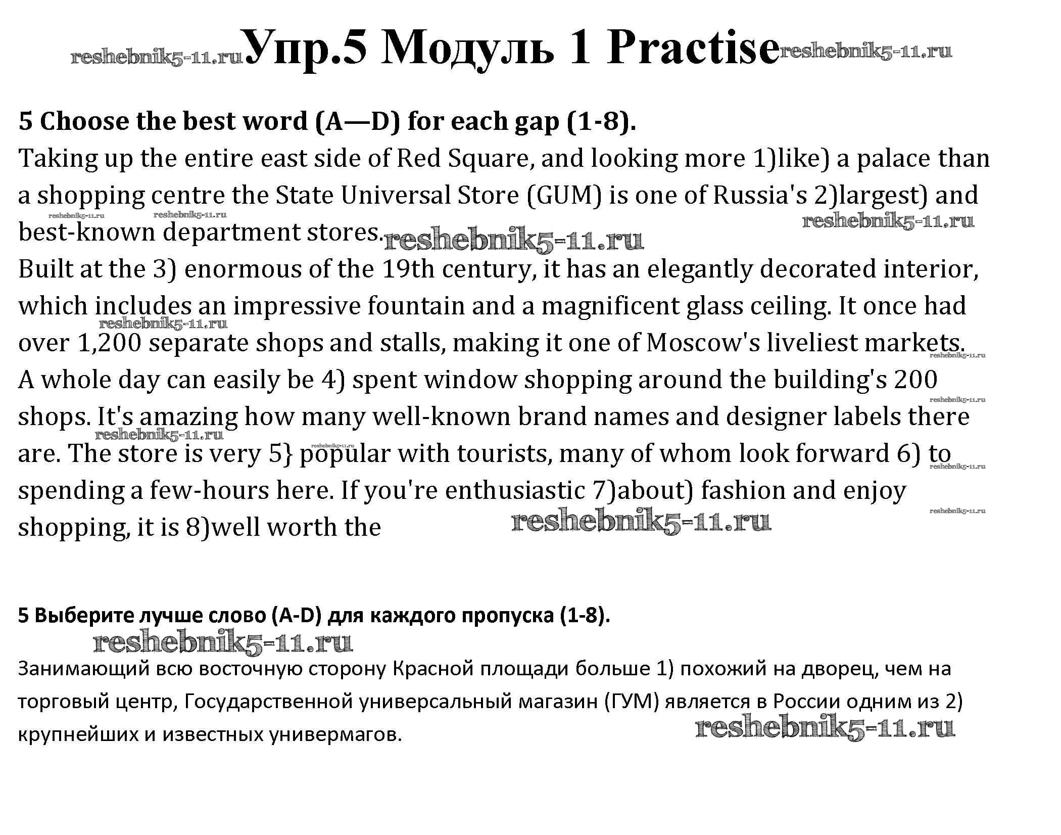 Готовая домашняя работа с ответами по Английскому языку за 10 класс Афанасьева, Дули, Михеева, Оби, Эванс Рабочая тетрадь Spotlight Базовый уровень Просвещение 2015 ФГОС - Vocabulary Practice 5