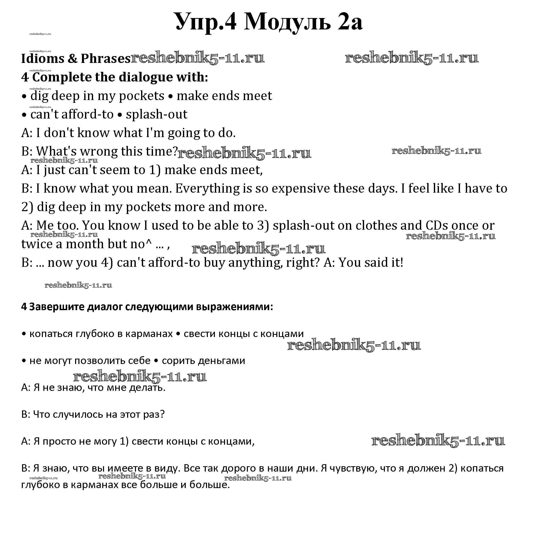 Готовая домашняя работа с ответами по Английскому языку за 10 класс Афанасьева, Дули, Михеева, Оби, Эванс Рабочая тетрадь Spotlight Базовый уровень Просвещение 2015 ФГОС - Часть 2a 4