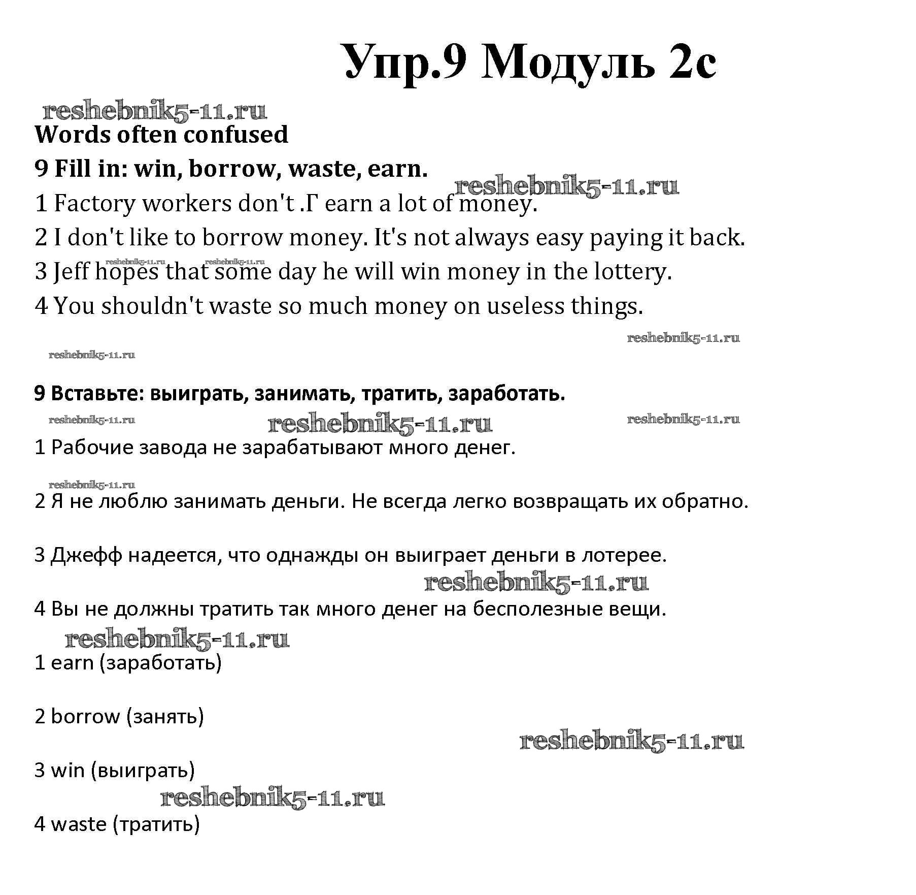 Готовая домашняя работа с ответами по Английскому языку за 10 класс Афанасьева, Дули, Михеева, Оби, Эванс Рабочая тетрадь Spotlight Базовый уровень Просвещение 2015 ФГОС - Часть 2c 9