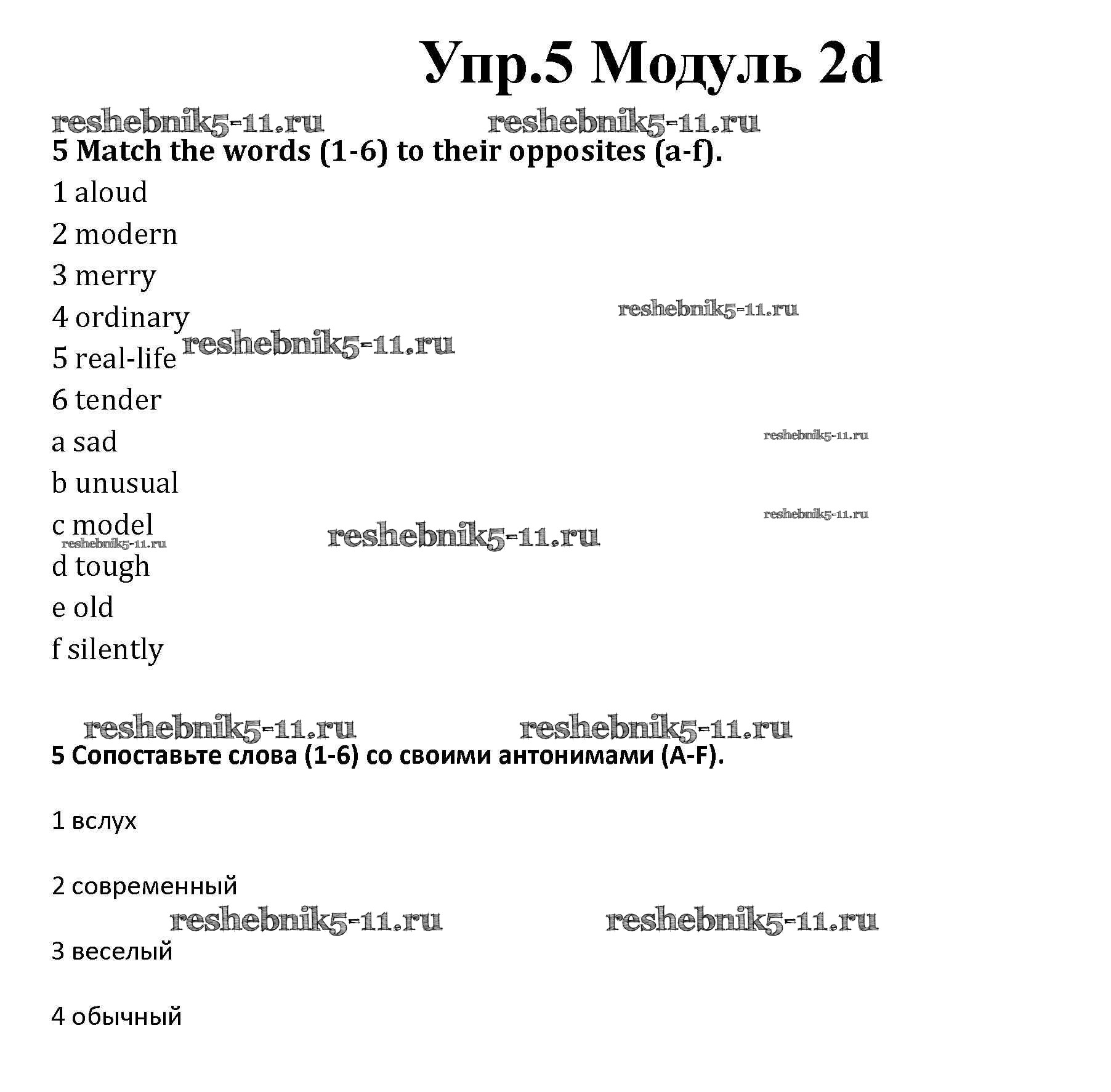 Готовая домашняя работа с ответами по Английскому языку за 10 класс Афанасьева, Дули, Михеева, Оби, Эванс Рабочая тетрадь Spotlight Базовый уровень Просвещение 2015 ФГОС - Часть 2d 5