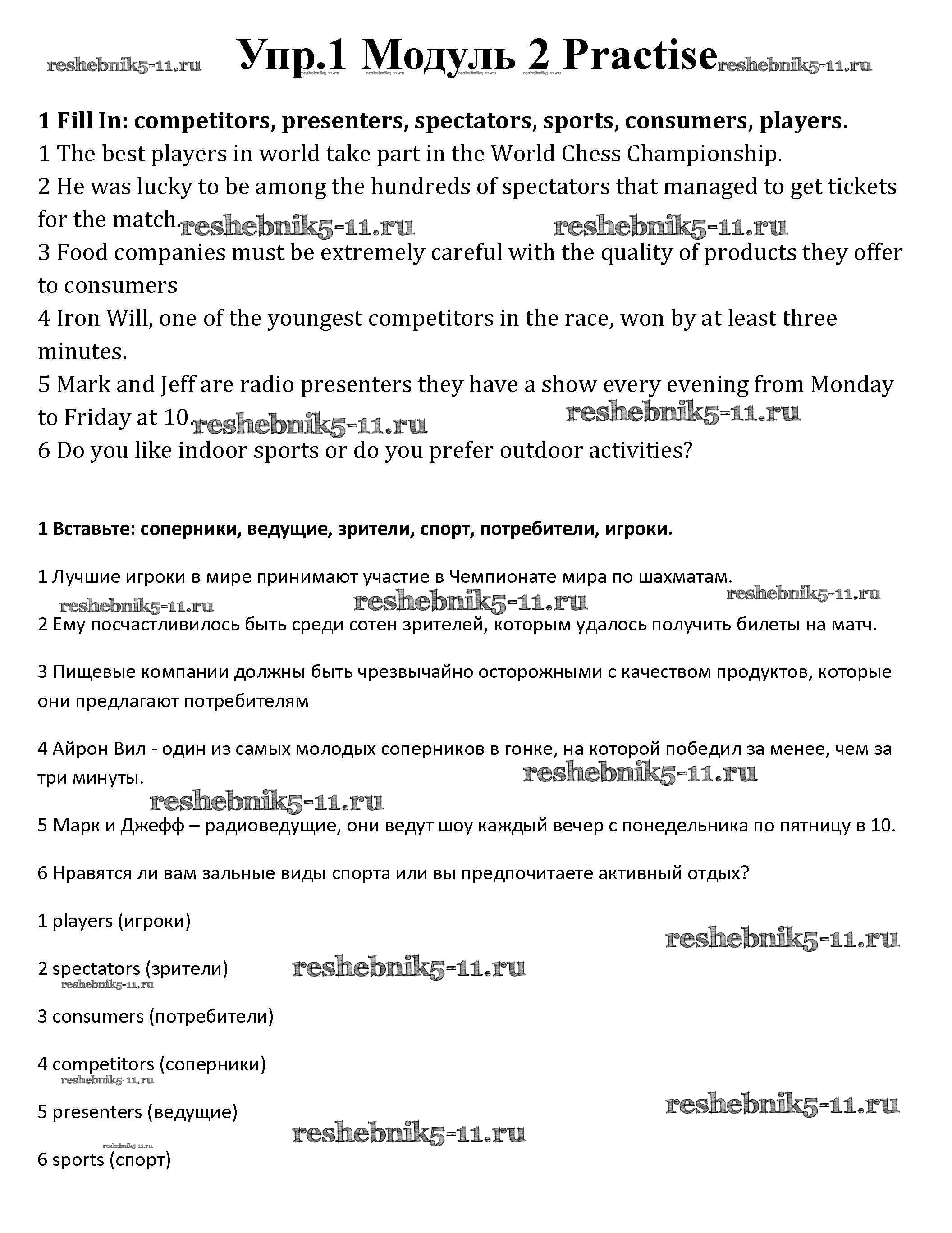 Готовая домашняя работа с ответами по Английскому языку за 10 класс Афанасьева, Дули, Михеева, Оби, Эванс Рабочая тетрадь Spotlight Базовый уровень Просвещение 2015 ФГОС - Vocabulary Practice 1