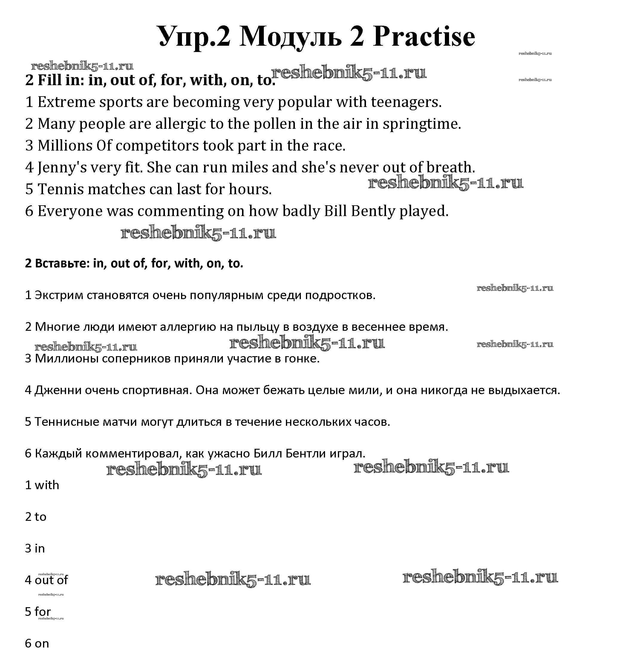 Готовая домашняя работа с ответами по Английскому языку за 10 класс Афанасьева, Дули, Михеева, Оби, Эванс Рабочая тетрадь Spotlight Базовый уровень Просвещение 2015 ФГОС - Vocabulary Practice 2