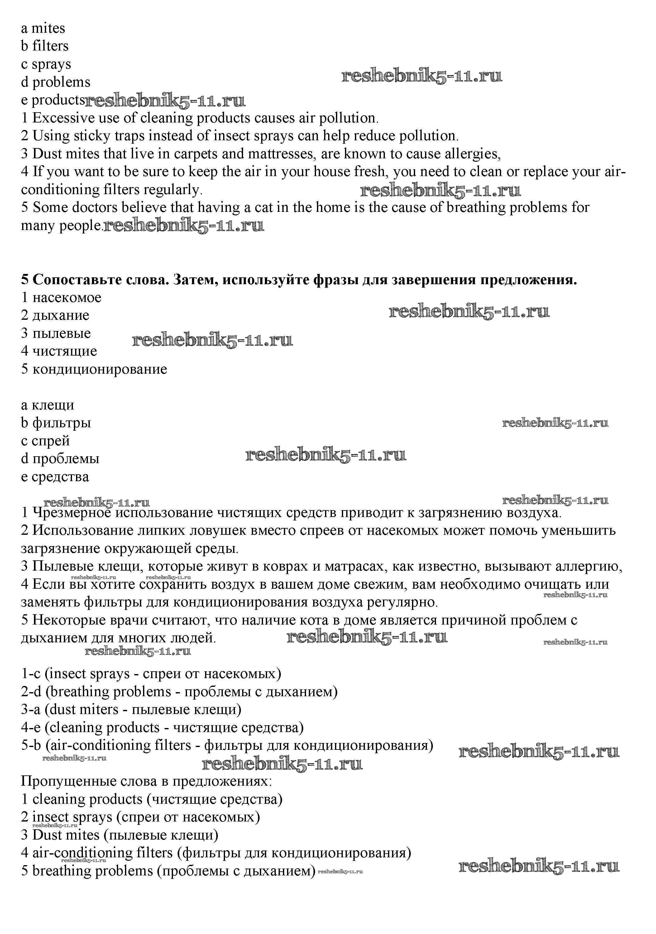 Готовая домашняя работа с ответами по Английскому языку за 10 класс Афанасьева, Дули, Михеева, Оби, Эванс Рабочая тетрадь Spotlight Базовый уровень Просвещение 2015 ФГОС - Vocabulary Practice 5