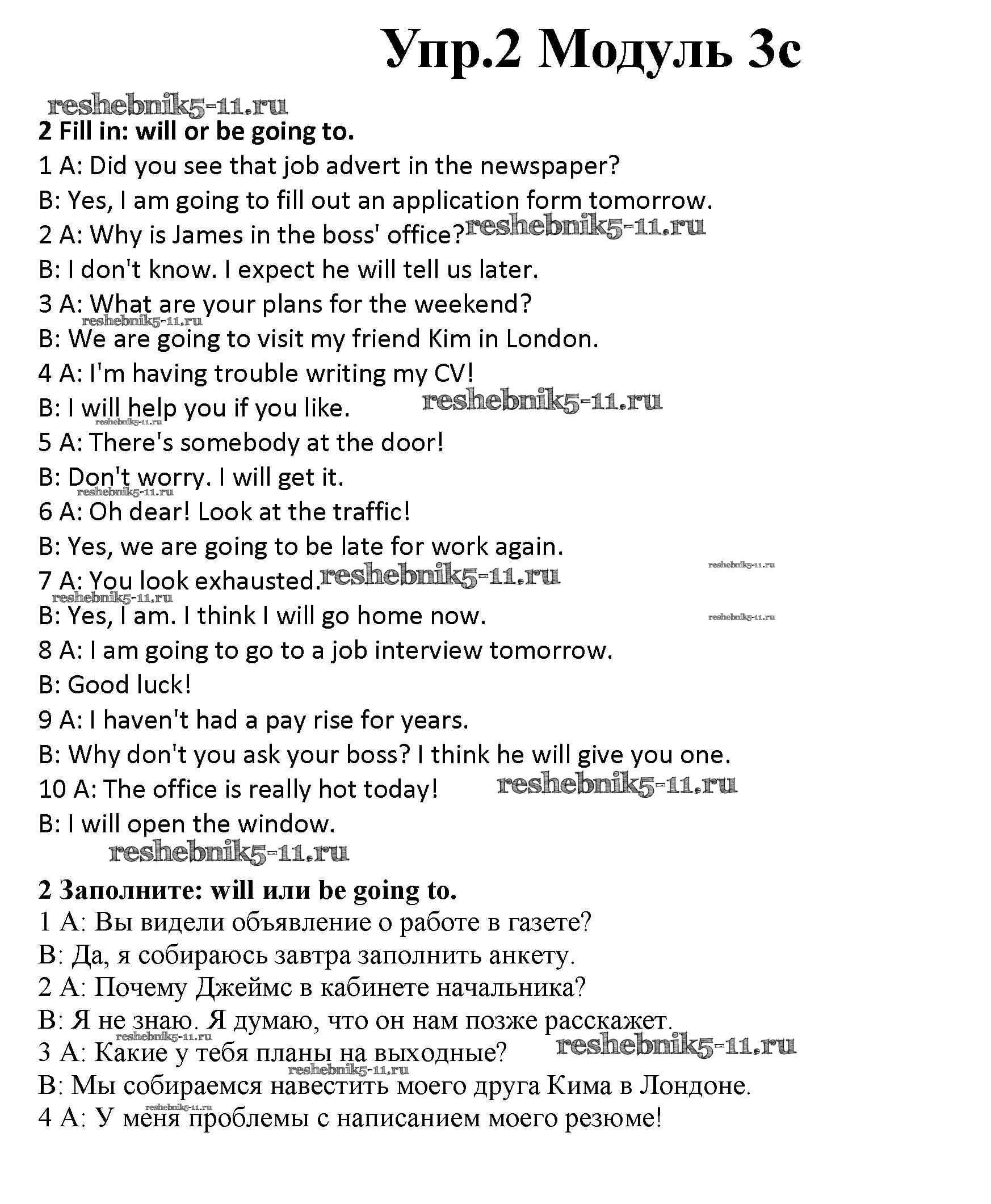 Готовая домашняя работа с ответами по Английскому языку за 10 класс Афанасьева, Дули, Михеева, Оби, Эванс Рабочая тетрадь Spotlight Базовый уровень Просвещение 2015 ФГОС - Часть 3c 2