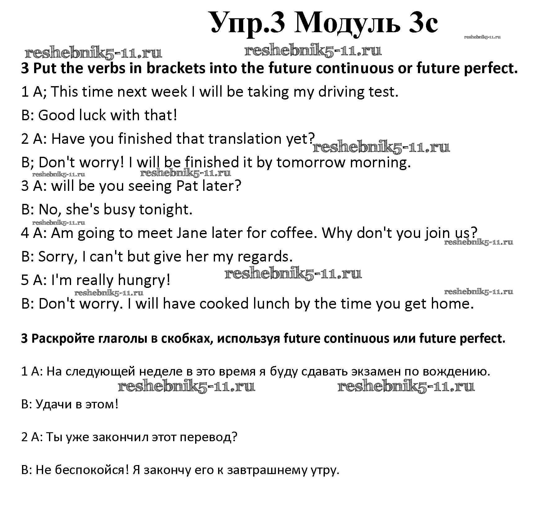 Готовая домашняя работа с ответами по Английскому языку за 10 класс Афанасьева, Дули, Михеева, Оби, Эванс Рабочая тетрадь Spotlight Базовый уровень Просвещение 2015 ФГОС - Часть 3c 3