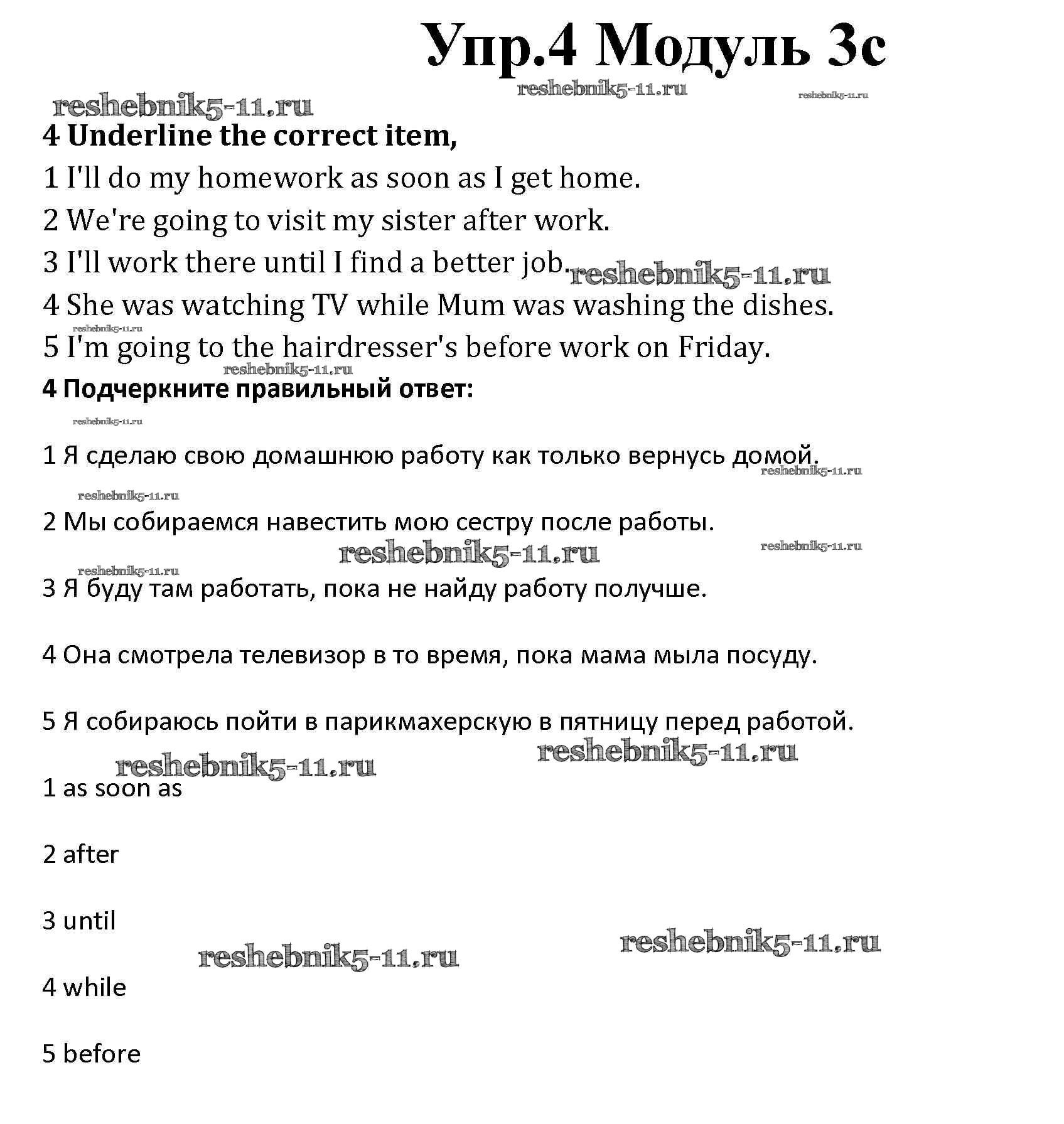 Готовая домашняя работа с ответами по Английскому языку за 10 класс Афанасьева, Дули, Михеева, Оби, Эванс Рабочая тетрадь Spotlight Базовый уровень Просвещение 2015 ФГОС - Часть 3c 4