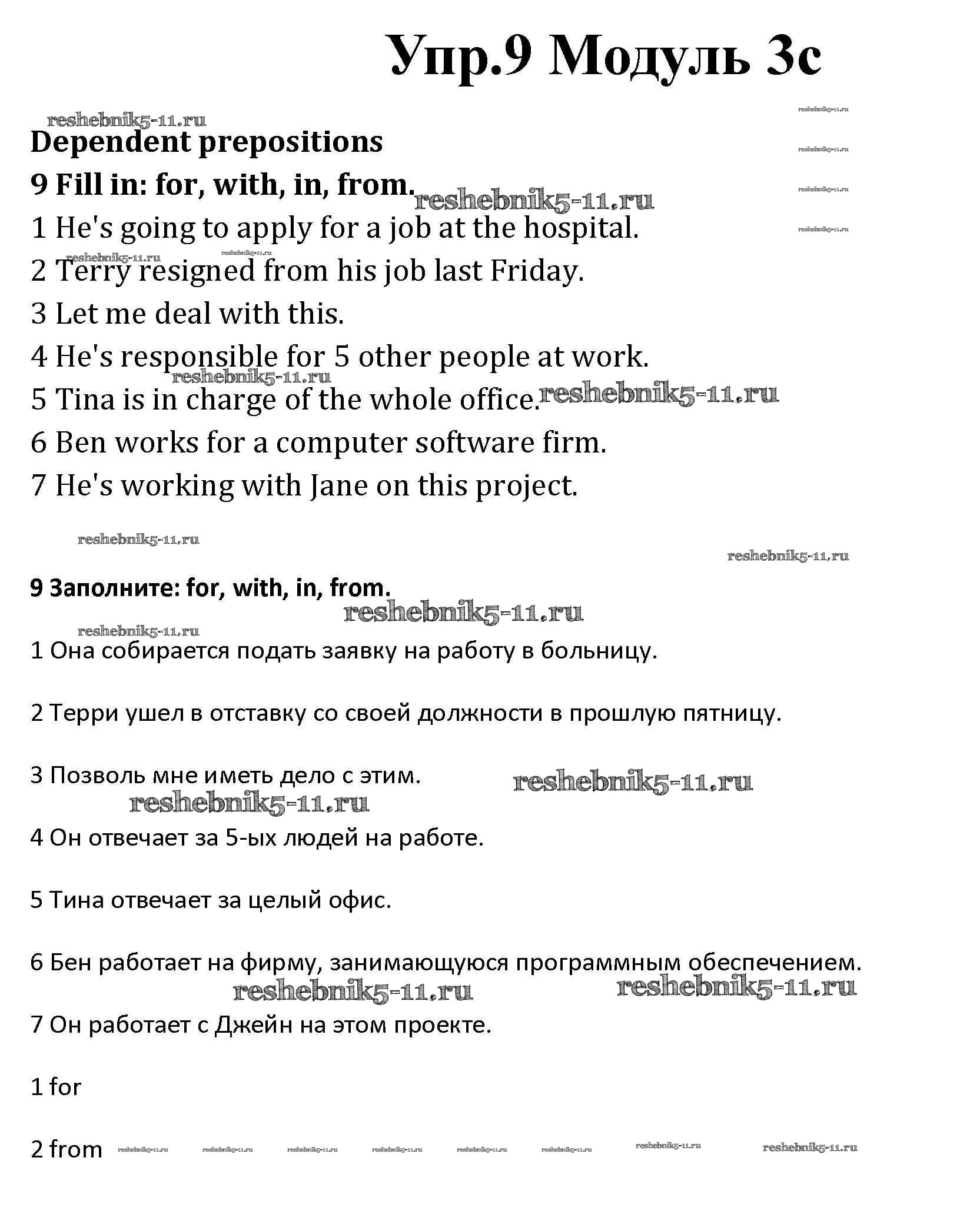 Готовая домашняя работа с ответами по Английскому языку за 10 класс Афанасьева, Дули, Михеева, Оби, Эванс Рабочая тетрадь Spotlight Базовый уровень Просвещение 2015 ФГОС - Часть 3c 9