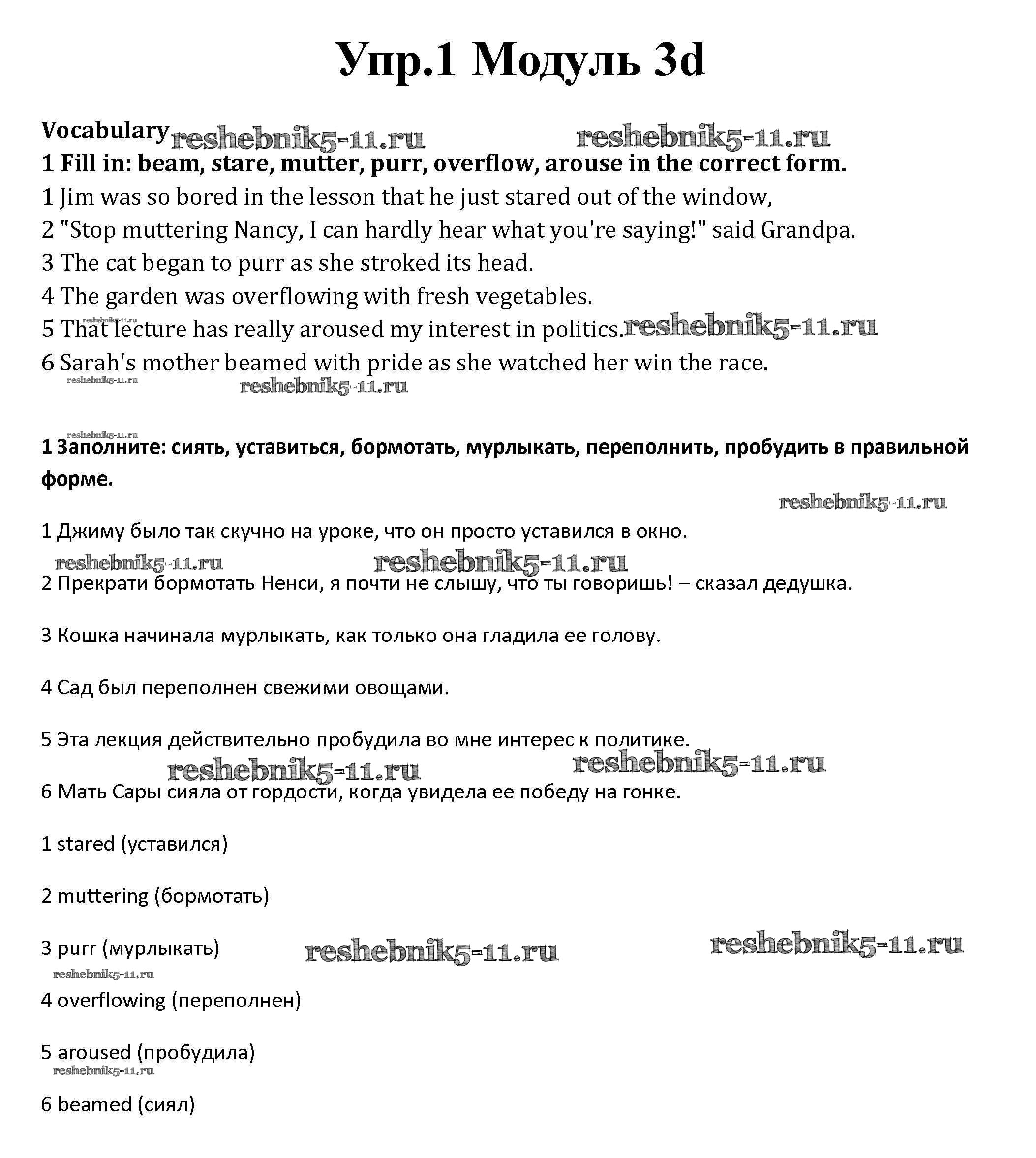 Готовая домашняя работа с ответами по Английскому языку за 10 класс Афанасьева, Дули, Михеева, Оби, Эванс Рабочая тетрадь Spotlight Базовый уровень Просвещение 2015 ФГОС - Часть 3d 1