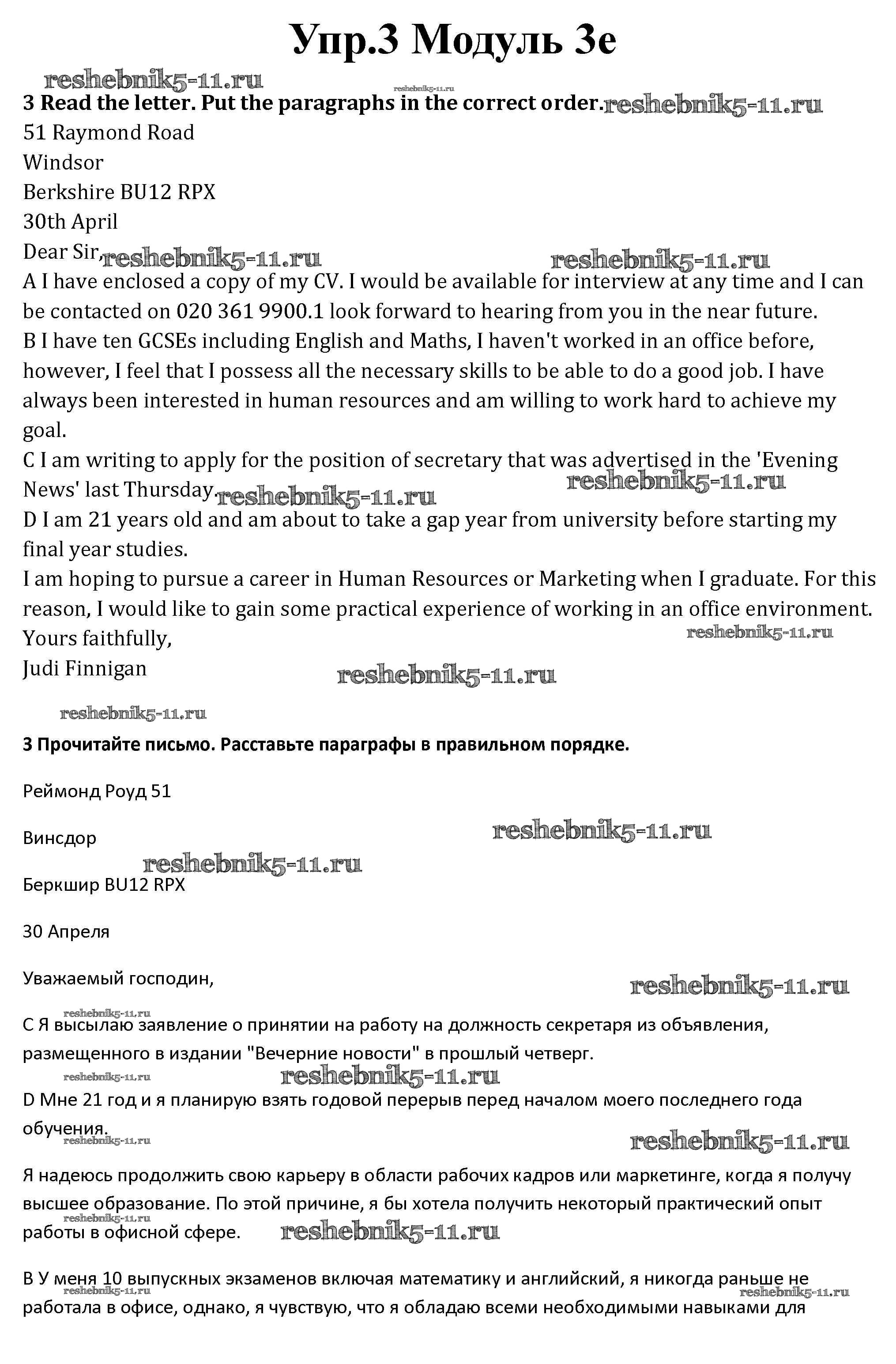 Готовая домашняя работа с ответами по Английскому языку за 10 класс Афанасьева, Дули, Михеева, Оби, Эванс Рабочая тетрадь Spotlight Базовый уровень Просвещение 2015 ФГОС - Часть 3e 3