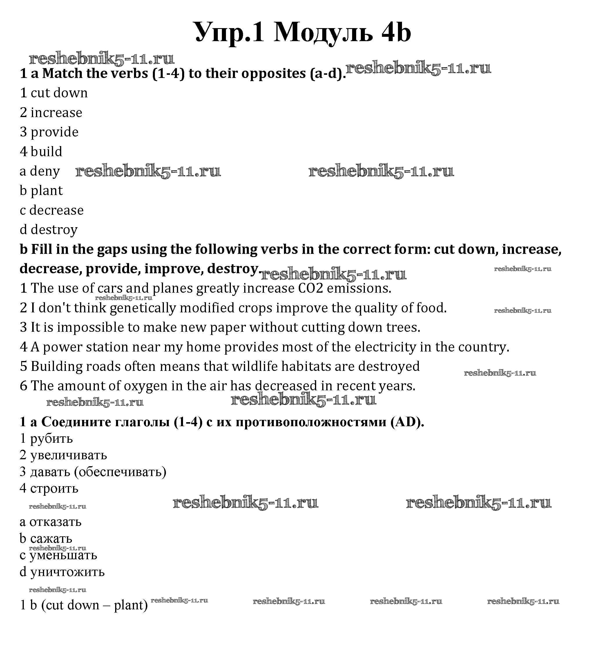 Готовая домашняя работа с ответами по Английскому языку за 10 класс Афанасьева, Дули, Михеева, Оби, Эванс Рабочая тетрадь Spotlight Базовый уровень Просвещение 2015 ФГОС - Часть 4b 1