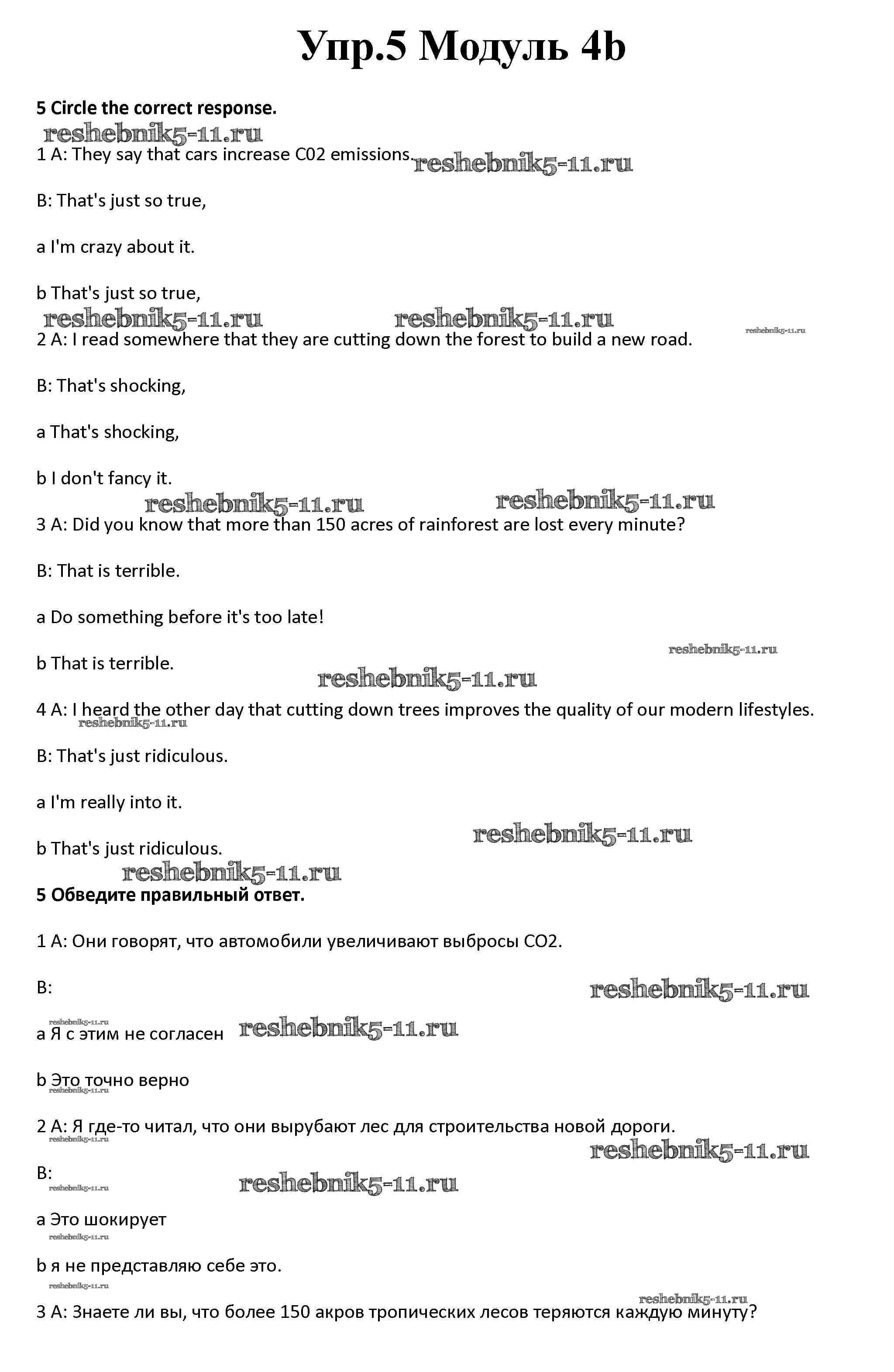 Готовая домашняя работа с ответами по Английскому языку за 10 класс Афанасьева, Дули, Михеева, Оби, Эванс Рабочая тетрадь Spotlight Базовый уровень Просвещение 2015 ФГОС - Часть 4b 5