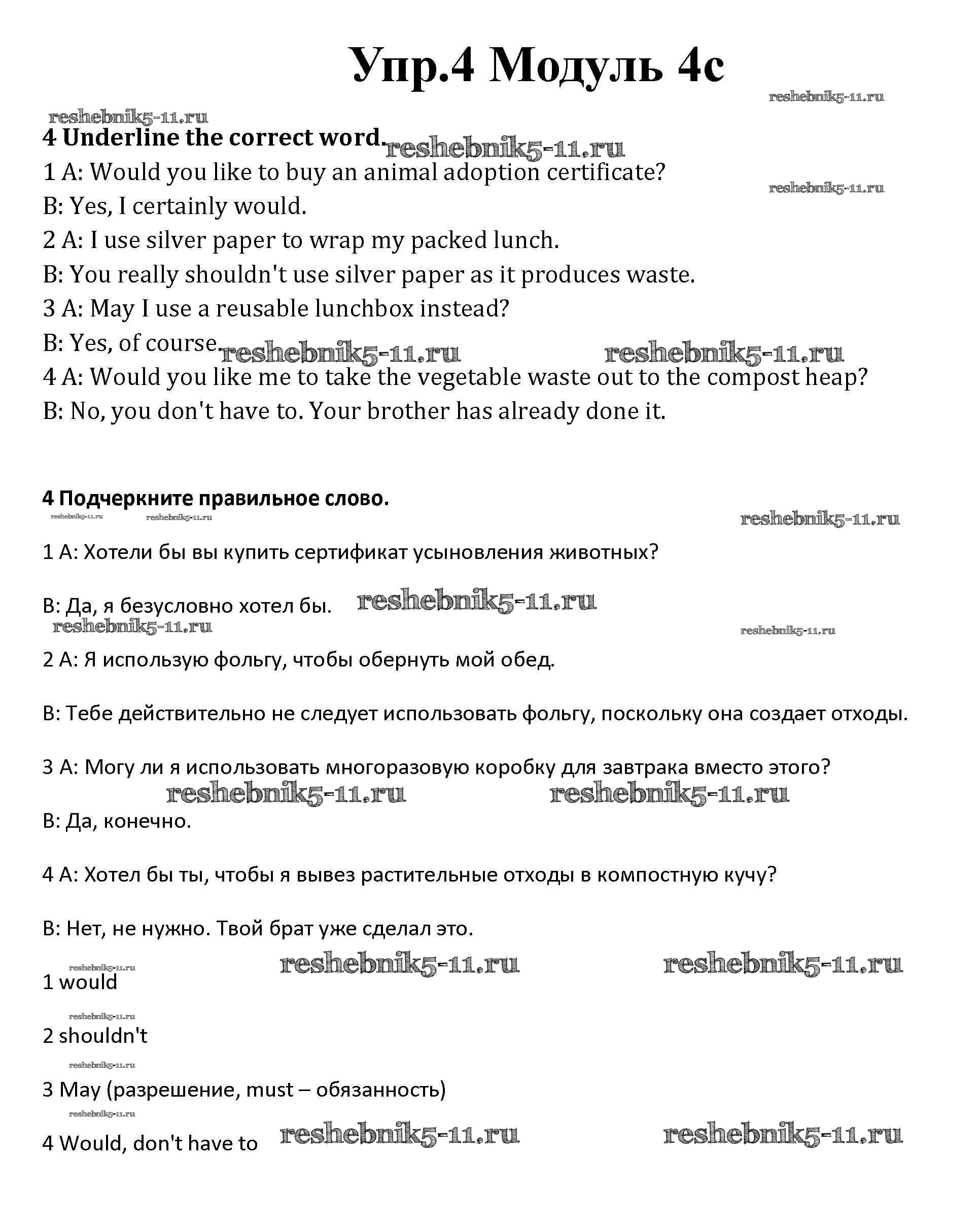 Готовая домашняя работа с ответами по Английскому языку за 10 класс Афанасьева, Дули, Михеева, Оби, Эванс Рабочая тетрадь Spotlight Базовый уровень Просвещение 2015 ФГОС - Часть 4c 4