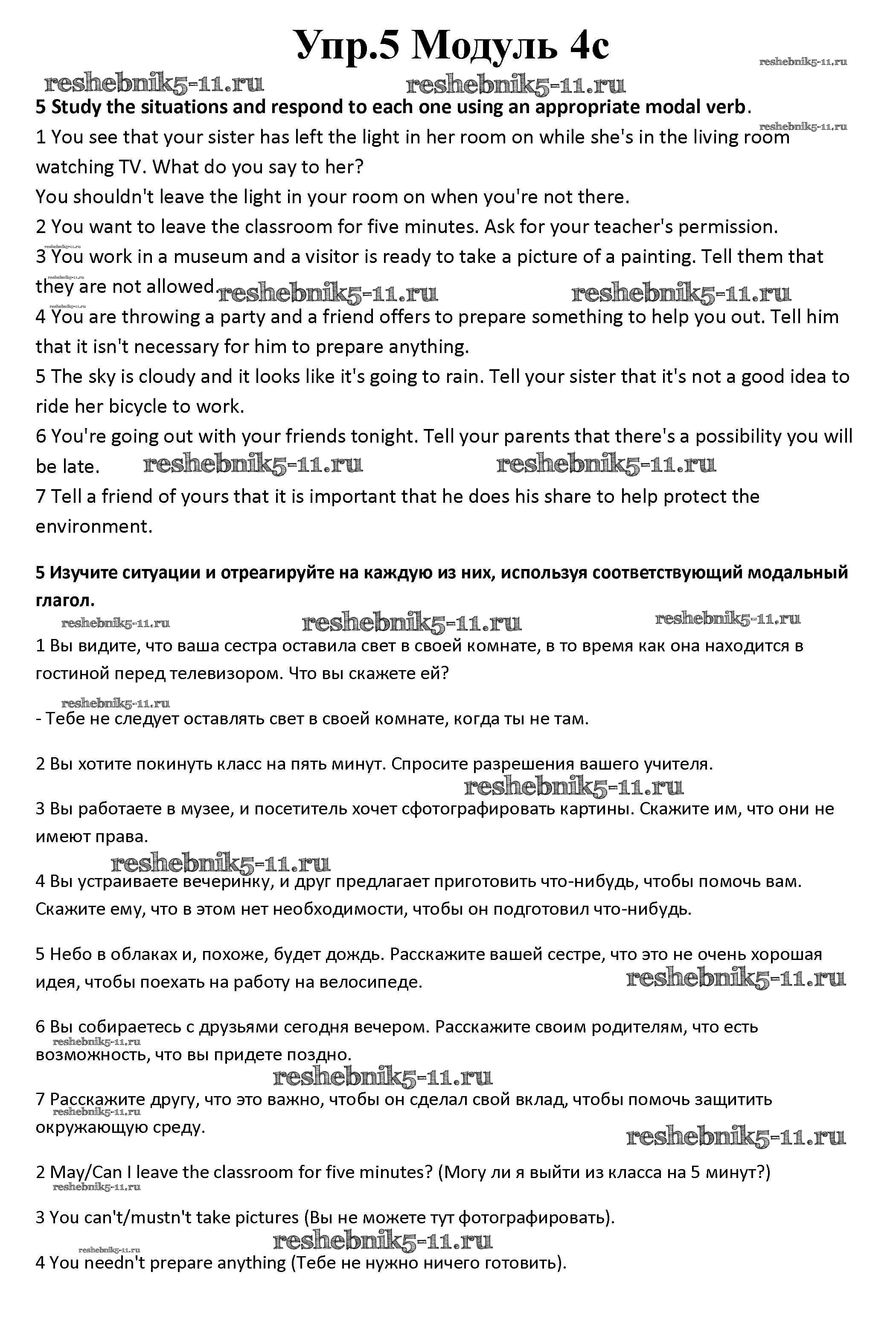 Готовая домашняя работа с ответами по Английскому языку за 10 класс Афанасьева, Дули, Михеева, Оби, Эванс Рабочая тетрадь Spotlight Базовый уровень Просвещение 2015 ФГОС - Часть 4c 5