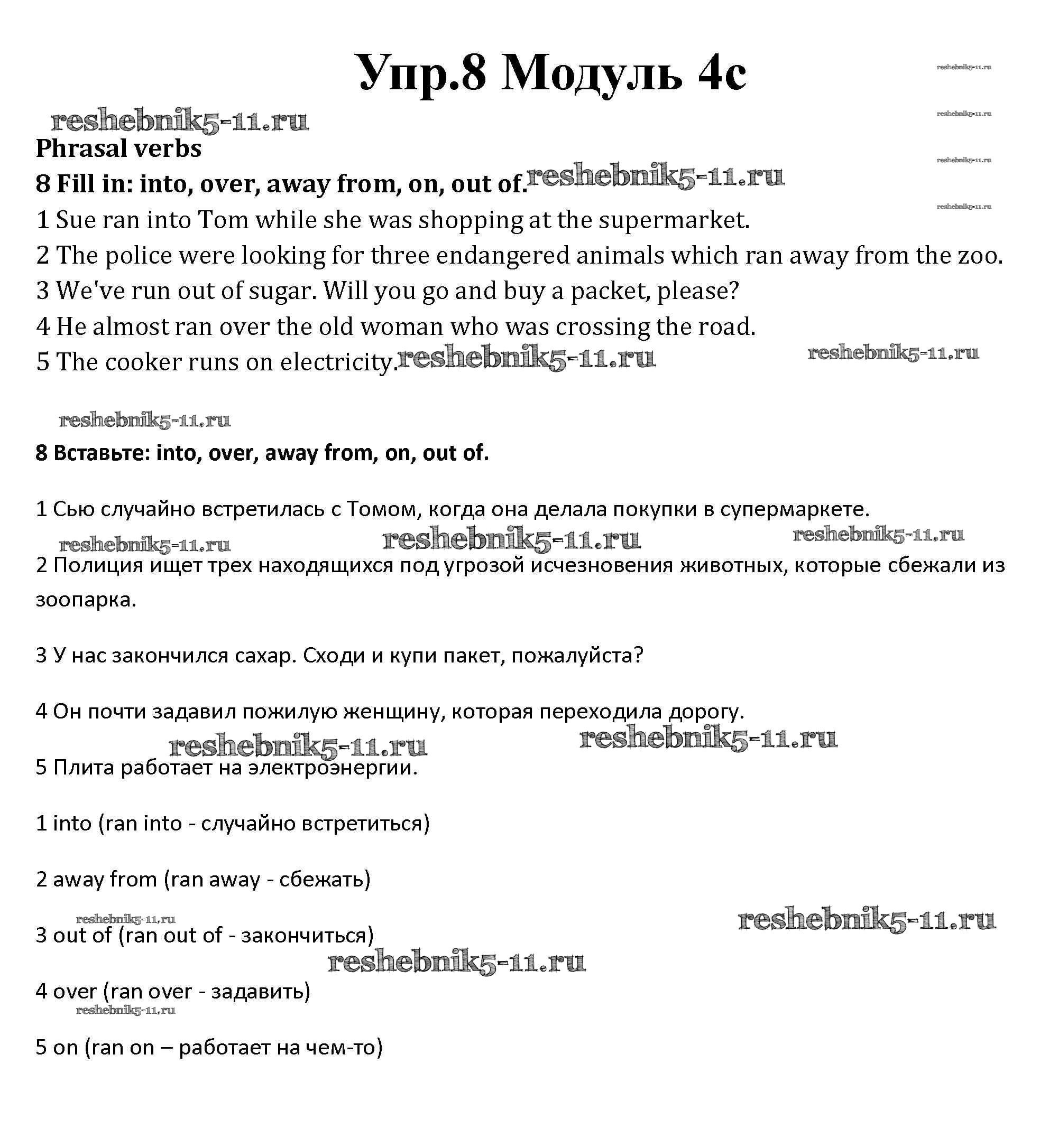Готовая домашняя работа с ответами по Английскому языку за 10 класс Афанасьева, Дули, Михеева, Оби, Эванс Рабочая тетрадь Spotlight Базовый уровень Просвещение 2015 ФГОС - Часть 4c 8