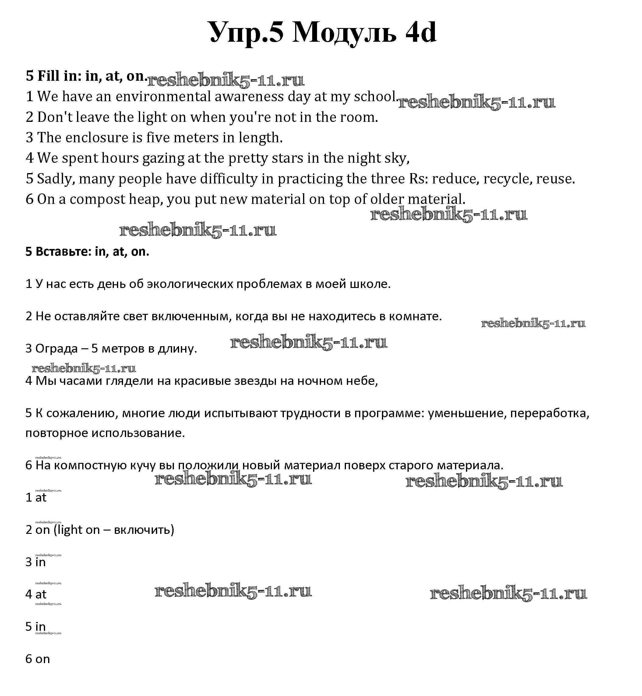 Готовая домашняя работа с ответами по Английскому языку за 10 класс Афанасьева, Дули, Михеева, Оби, Эванс Рабочая тетрадь Spotlight Базовый уровень Просвещение 2015 ФГОС - Часть 4d 5