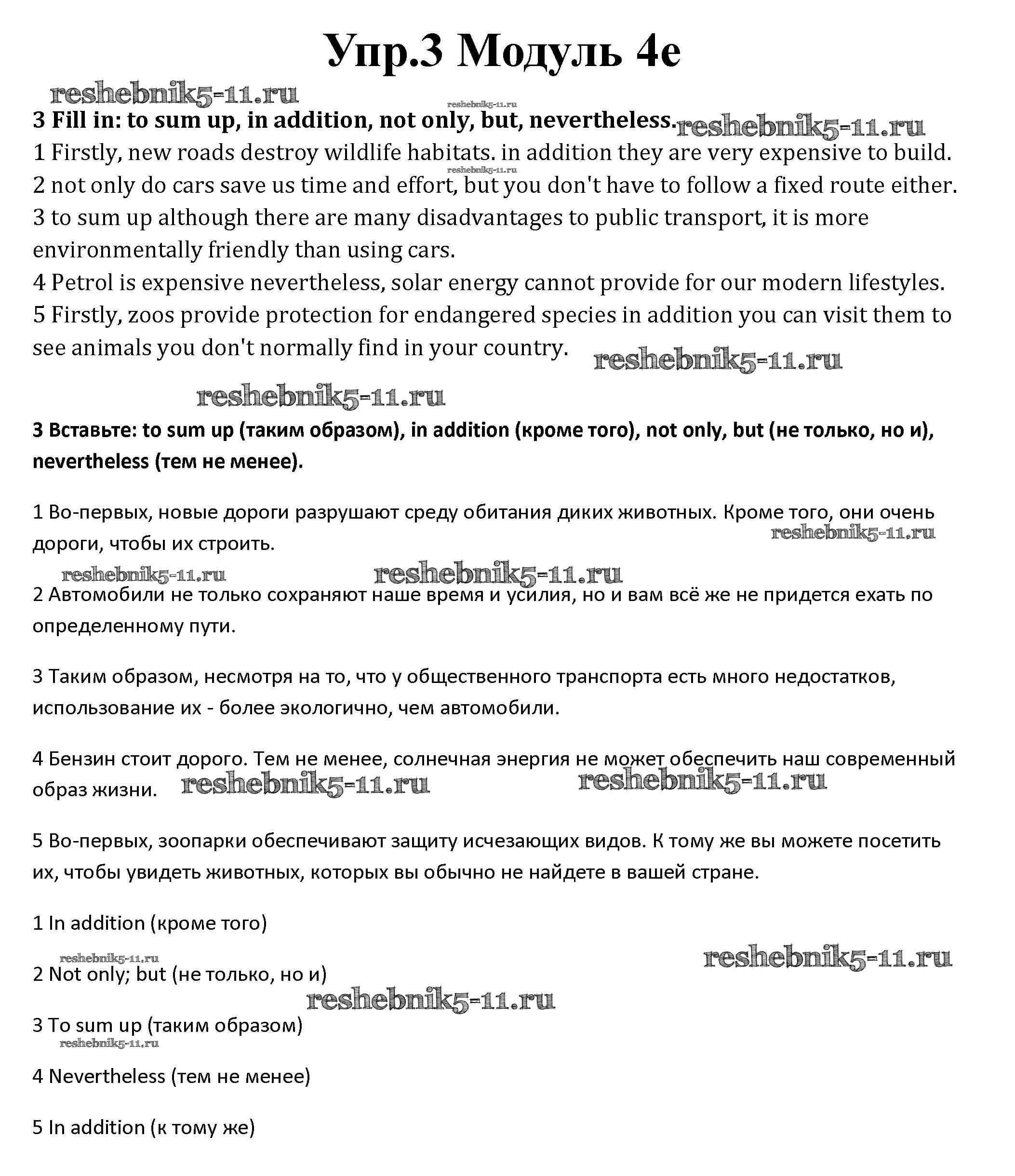 Готовая домашняя работа с ответами по Английскому языку за 10 класс Афанасьева, Дули, Михеева, Оби, Эванс Рабочая тетрадь Spotlight Базовый уровень Просвещение 2015 ФГОС - Часть 4e 3