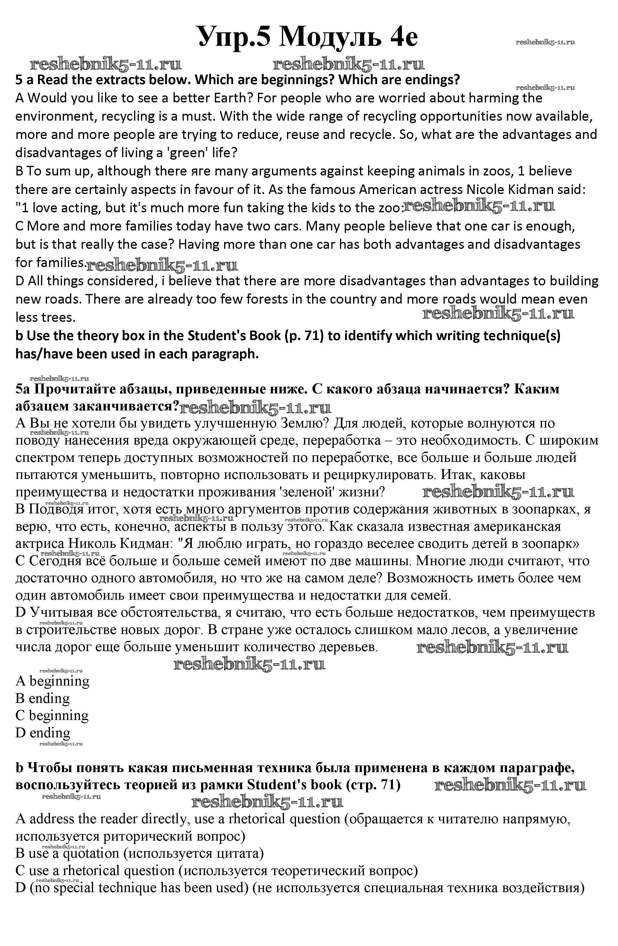 Готовая домашняя работа с ответами по Английскому языку за 10 класс Афанасьева, Дули, Михеева, Оби, Эванс Рабочая тетрадь Spotlight Базовый уровень Просвещение 2015 ФГОС - Часть 4e 5