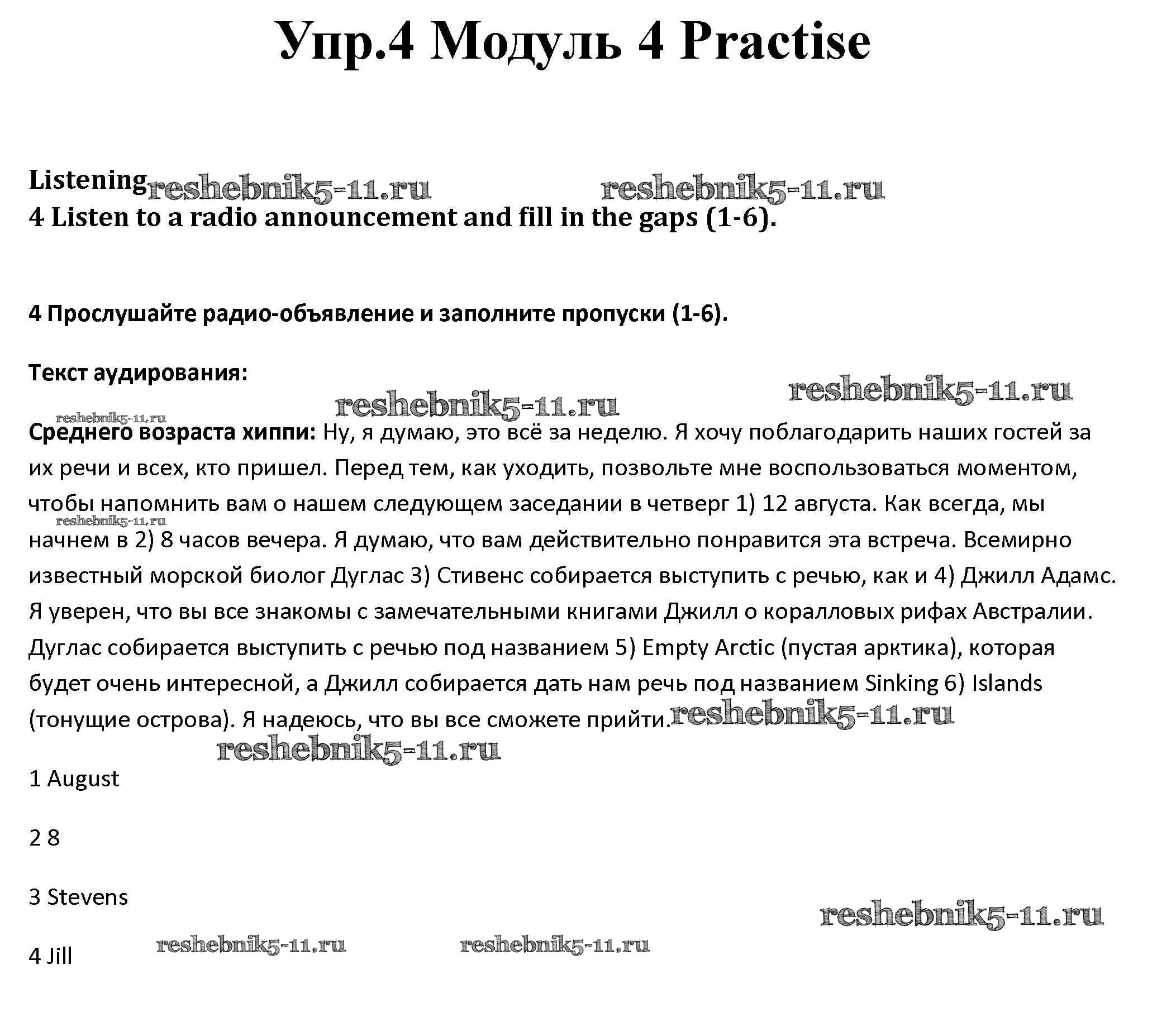 Готовая домашняя работа с ответами по Английскому языку за 10 класс Афанасьева, Дули, Михеева, Оби, Эванс Рабочая тетрадь Spotlight Базовый уровень Просвещение 2015 ФГОС - Vocabulary Practice 4