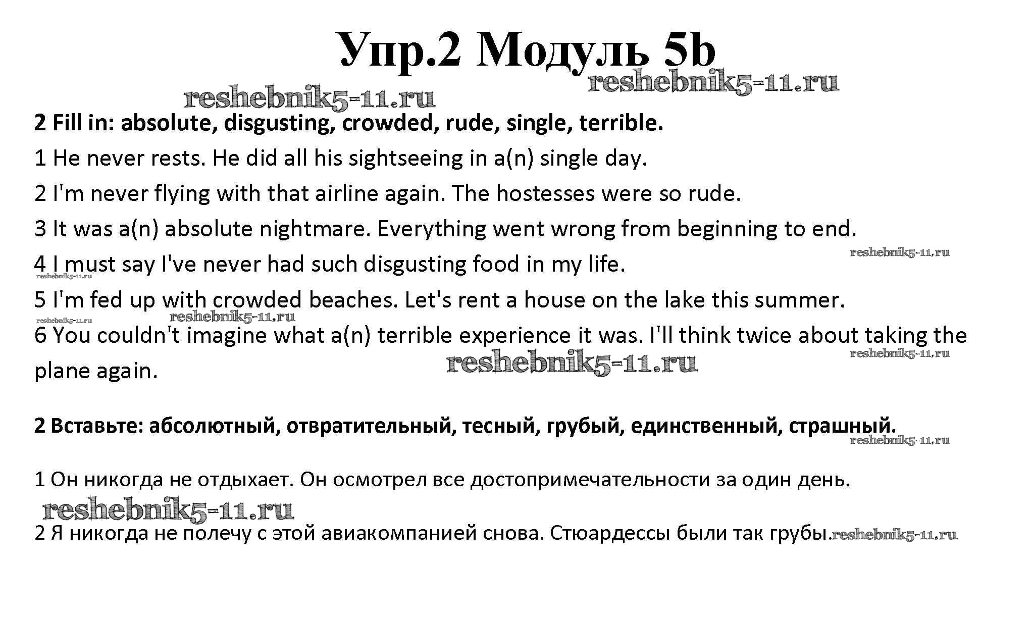 Готовая домашняя работа с ответами по Английскому языку за 10 класс Афанасьева, Дули, Михеева, Оби, Эванс Рабочая тетрадь Spotlight Базовый уровень Просвещение 2015 ФГОС - Часть 5b 2