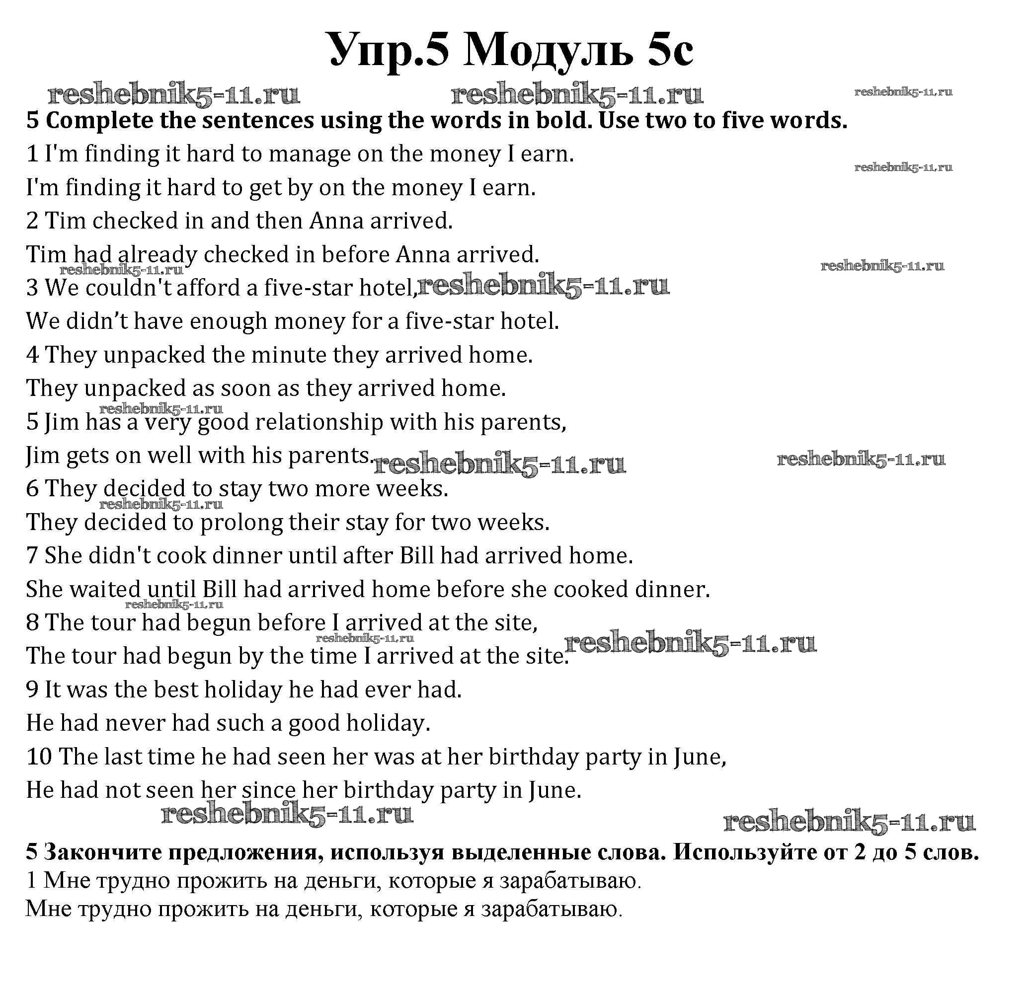Готовая домашняя работа с ответами по Английскому языку за 10 класс Афанасьева, Дули, Михеева, Оби, Эванс Рабочая тетрадь Spotlight Базовый уровень Просвещение 2015 ФГОС - Часть 5c 5