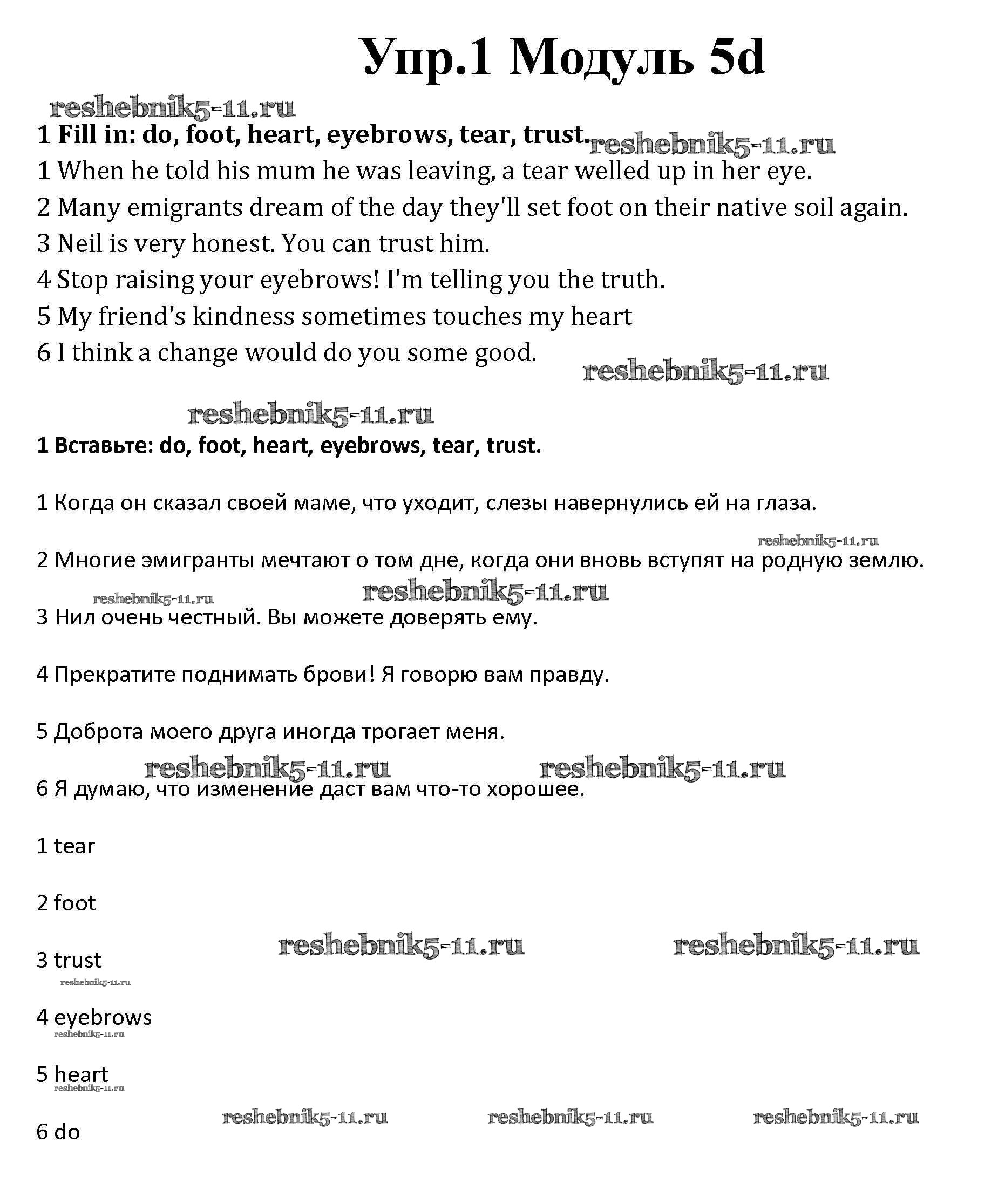 Готовая домашняя работа с ответами по Английскому языку за 10 класс Афанасьева, Дули, Михеева, Оби, Эванс Рабочая тетрадь Spotlight Базовый уровень Просвещение 2015 ФГОС - Часть 5d 1