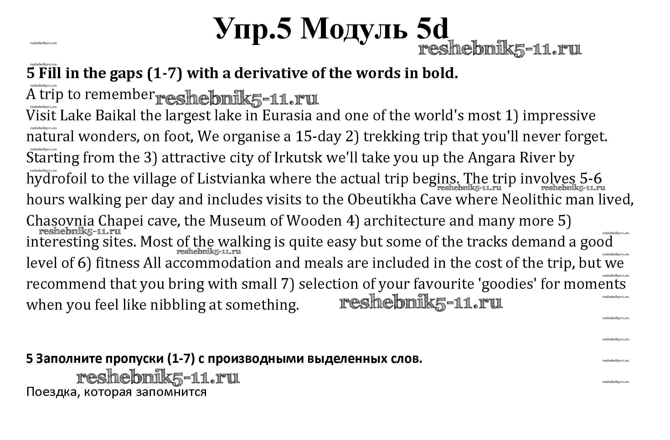 Готовая домашняя работа с ответами по Английскому языку за 10 класс Афанасьева, Дули, Михеева, Оби, Эванс Рабочая тетрадь Spotlight Базовый уровень Просвещение 2015 ФГОС - Часть 5d 5