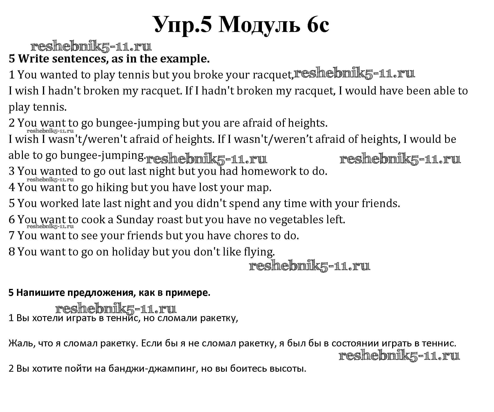 Готовая домашняя работа с ответами по Английскому языку за 10 класс Афанасьева, Дули, Михеева, Оби, Эванс Рабочая тетрадь Spotlight Базовый уровень Просвещение 2015 ФГОС - Часть 6c 5