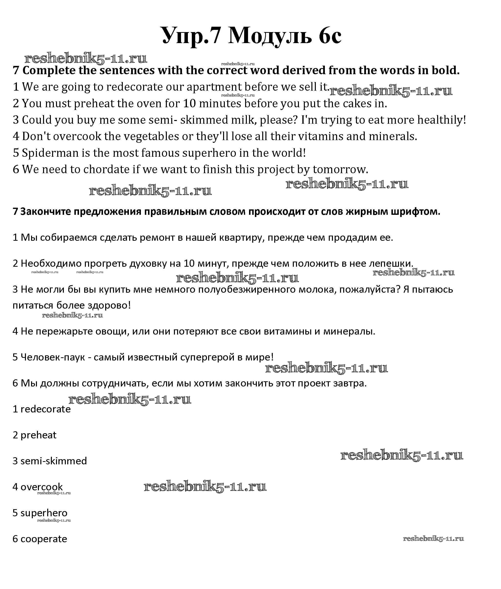 Готовая домашняя работа с ответами по Английскому языку за 10 класс Афанасьева, Дули, Михеева, Оби, Эванс Рабочая тетрадь Spotlight Базовый уровень Просвещение 2015 ФГОС - Часть 6c 7