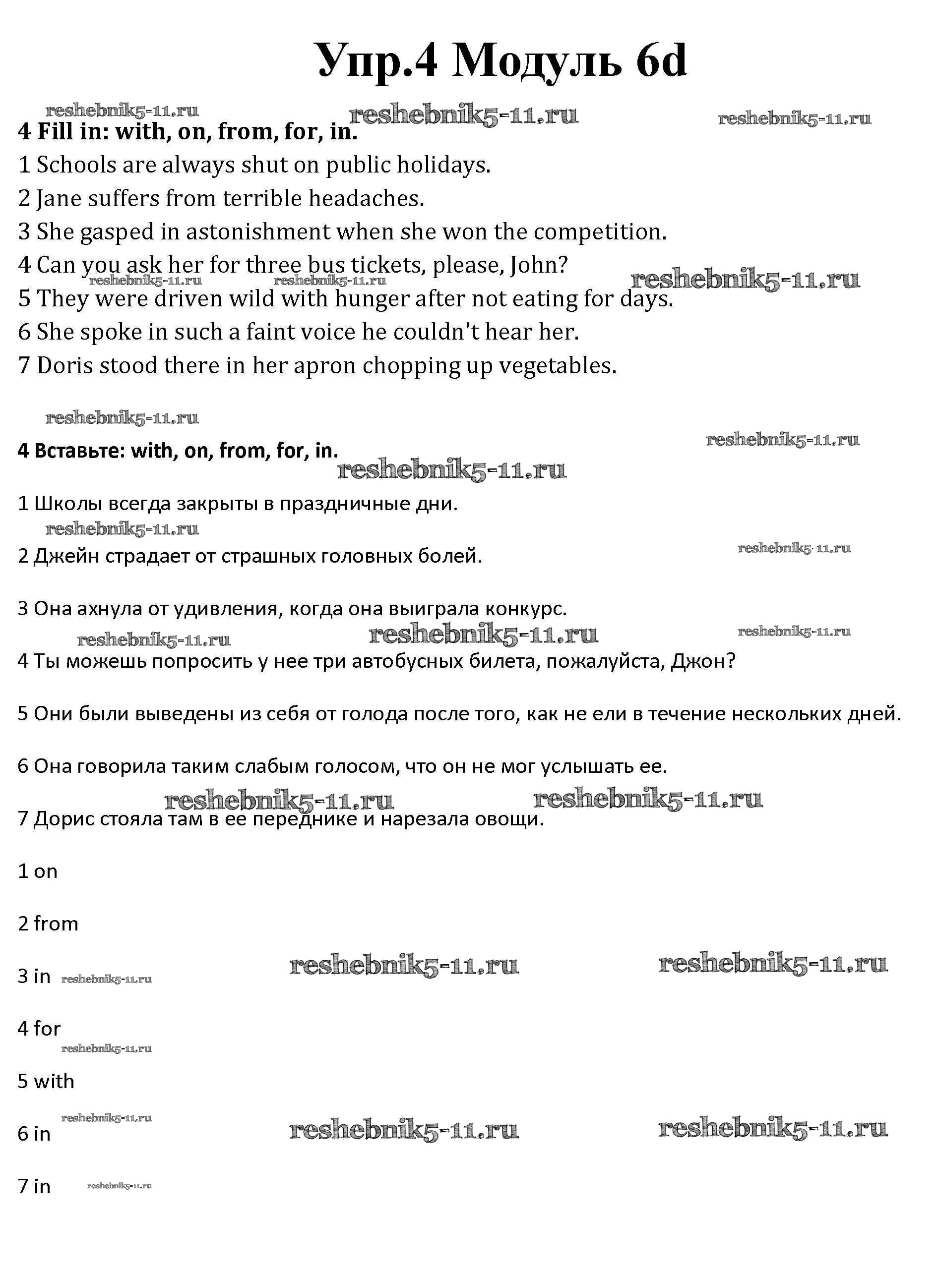 Готовая домашняя работа с ответами по Английскому языку за 10 класс Афанасьева, Дули, Михеева, Оби, Эванс Рабочая тетрадь Spotlight Базовый уровень Просвещение 2015 ФГОС - Часть 6d 4