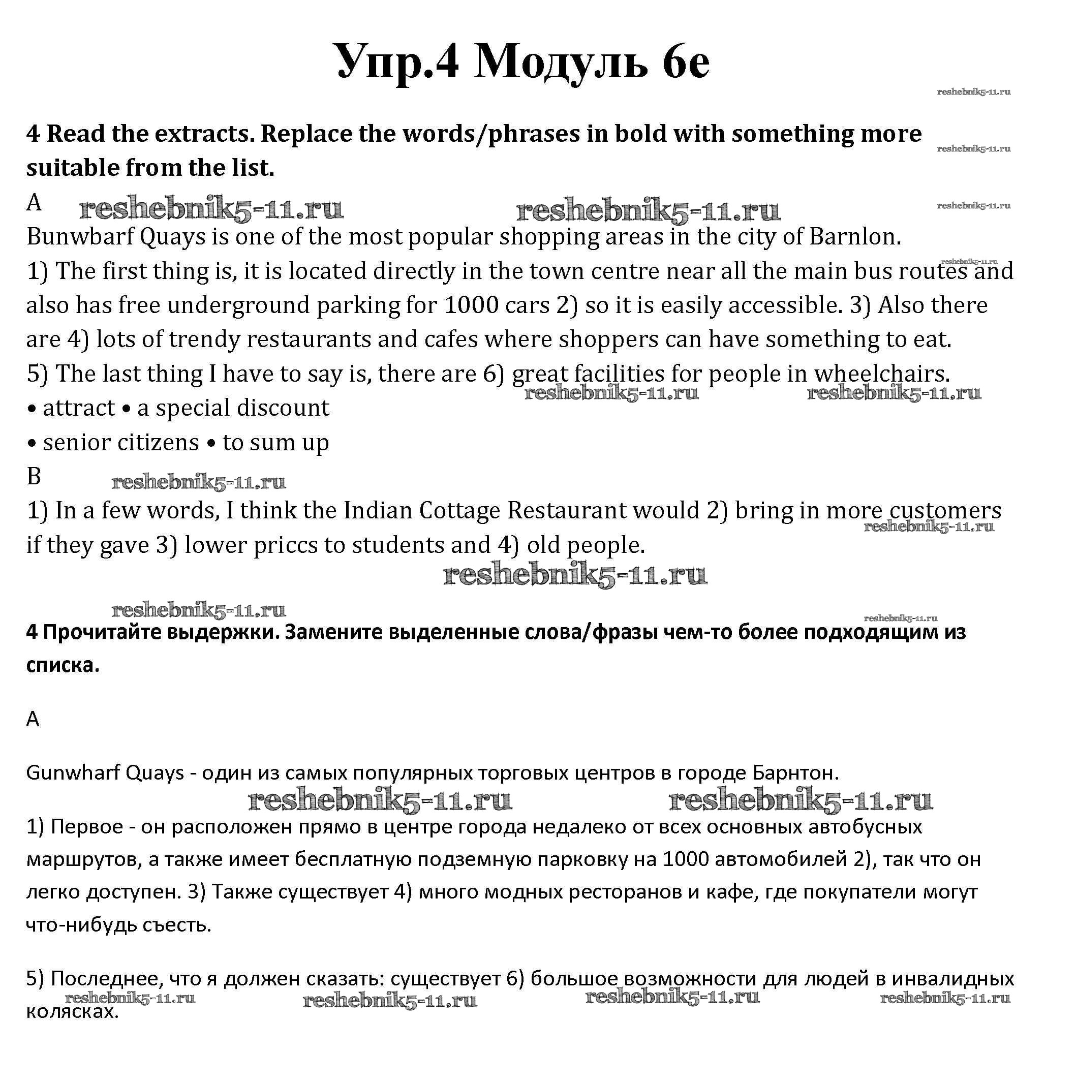 Готовая домашняя работа с ответами по Английскому языку за 10 класс Афанасьева, Дули, Михеева, Оби, Эванс Рабочая тетрадь Spotlight Базовый уровень Просвещение 2015 ФГОС - Часть 6e 4
