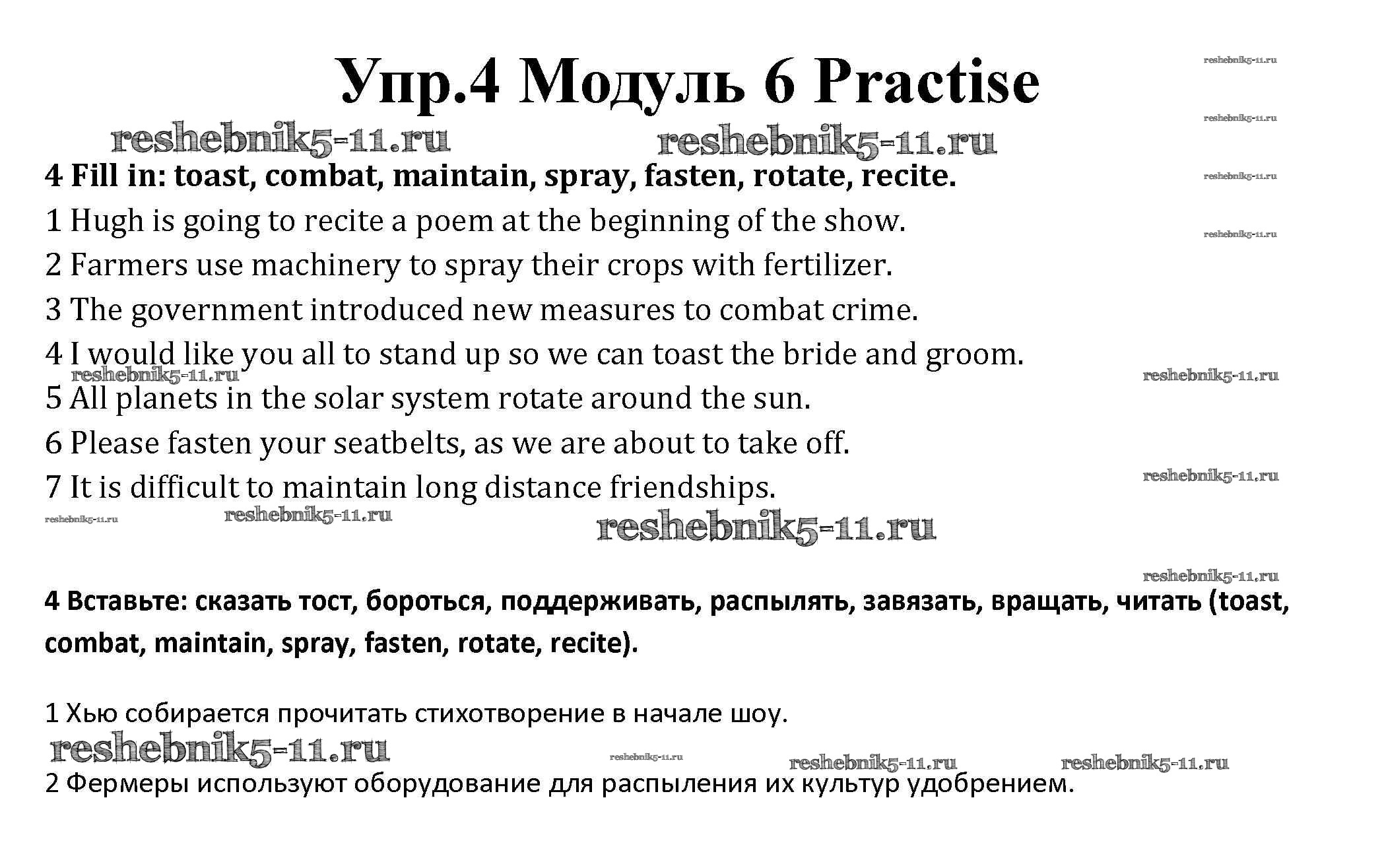 Готовая домашняя работа с ответами по Английскому языку за 10 класс Афанасьева, Дули, Михеева, Оби, Эванс Рабочая тетрадь Spotlight Базовый уровень Просвещение 2015 ФГОС - Vocabulary Practice 4