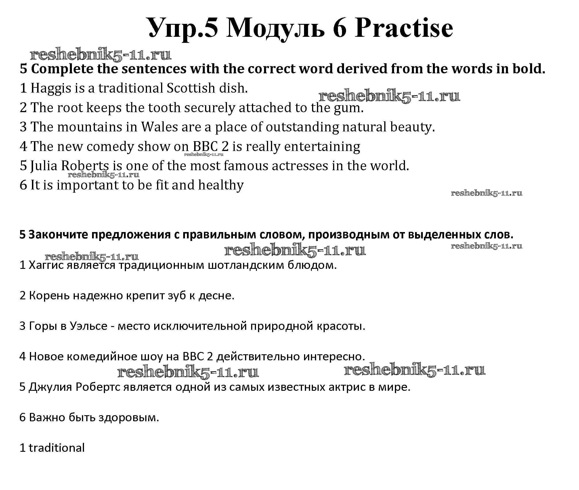 Готовая домашняя работа с ответами по Английскому языку за 10 класс Афанасьева, Дули, Михеева, Оби, Эванс Рабочая тетрадь Spotlight Базовый уровень Просвещение 2015 ФГОС - Vocabulary Practice 5