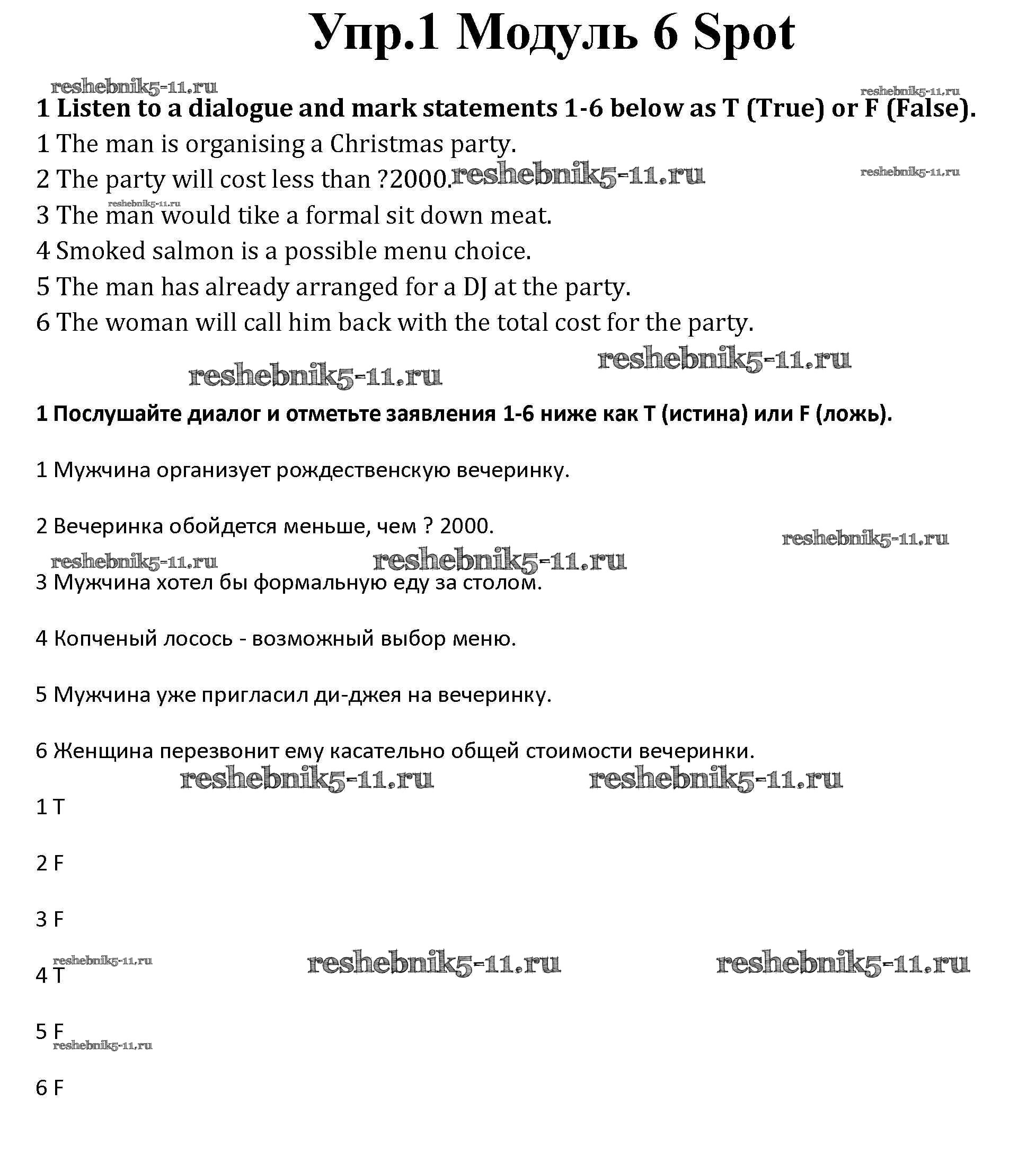 Готовая домашняя работа с ответами по Английскому языку за 10 класс Афанасьева, Дули, Михеева, Оби, Эванс Рабочая тетрадь Spotlight Базовый уровень Просвещение 2015 ФГОС - Spotlight on Exams 1