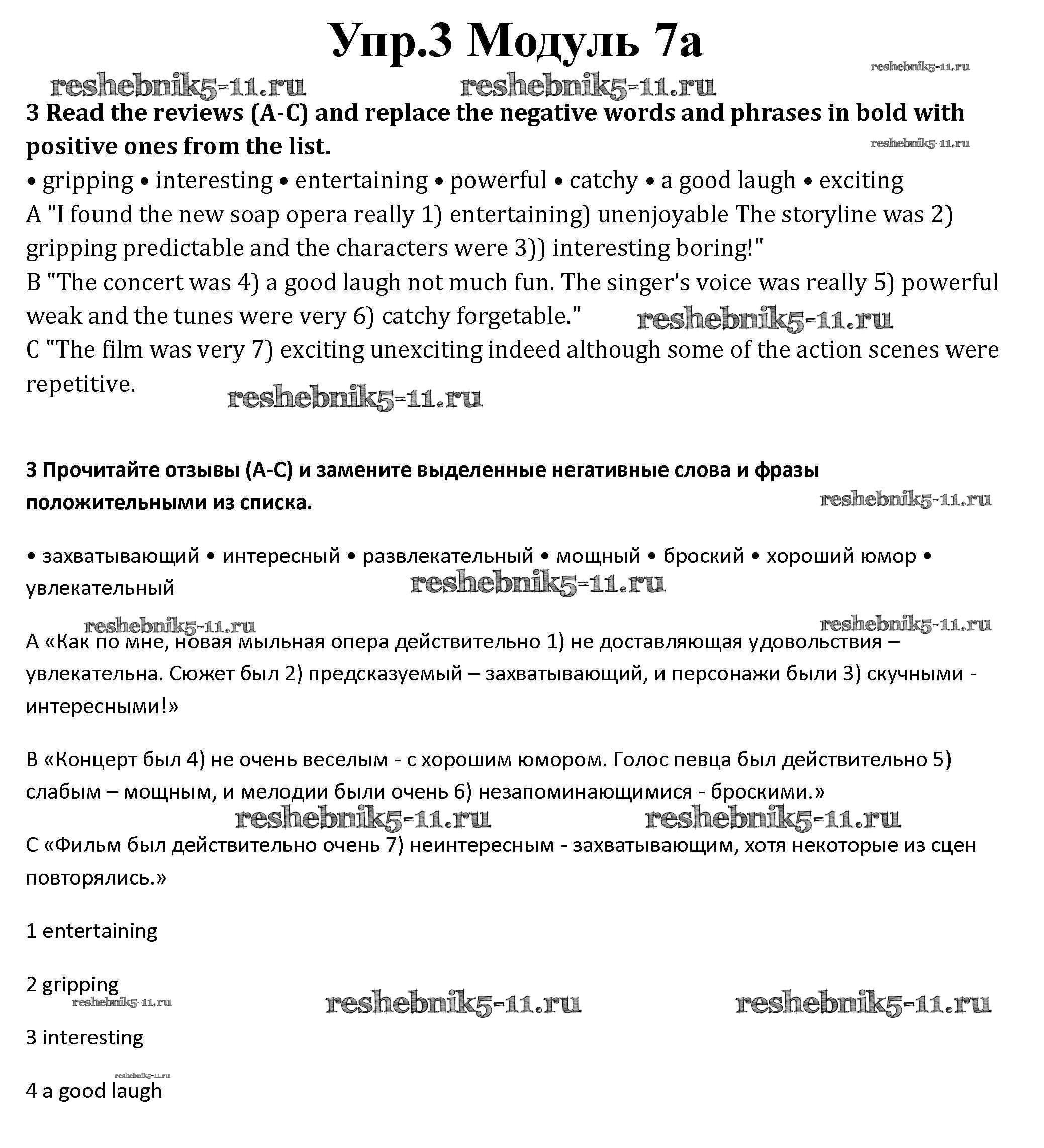 Готовая домашняя работа с ответами по Английскому языку за 10 класс Афанасьева, Дули, Михеева, Оби, Эванс Рабочая тетрадь Spotlight Базовый уровень Просвещение 2015 ФГОС - Часть 7a 3