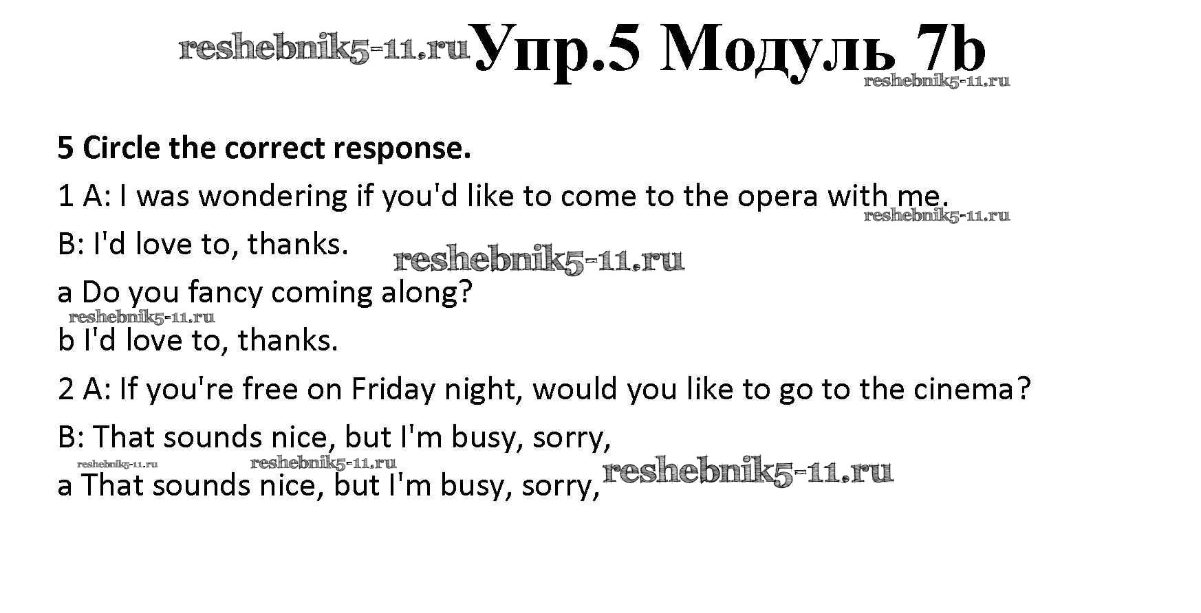 Готовая домашняя работа с ответами по Английскому языку за 10 класс Афанасьева, Дули, Михеева, Оби, Эванс Рабочая тетрадь Spotlight Базовый уровень Просвещение 2015 ФГОС - Часть 7b 5