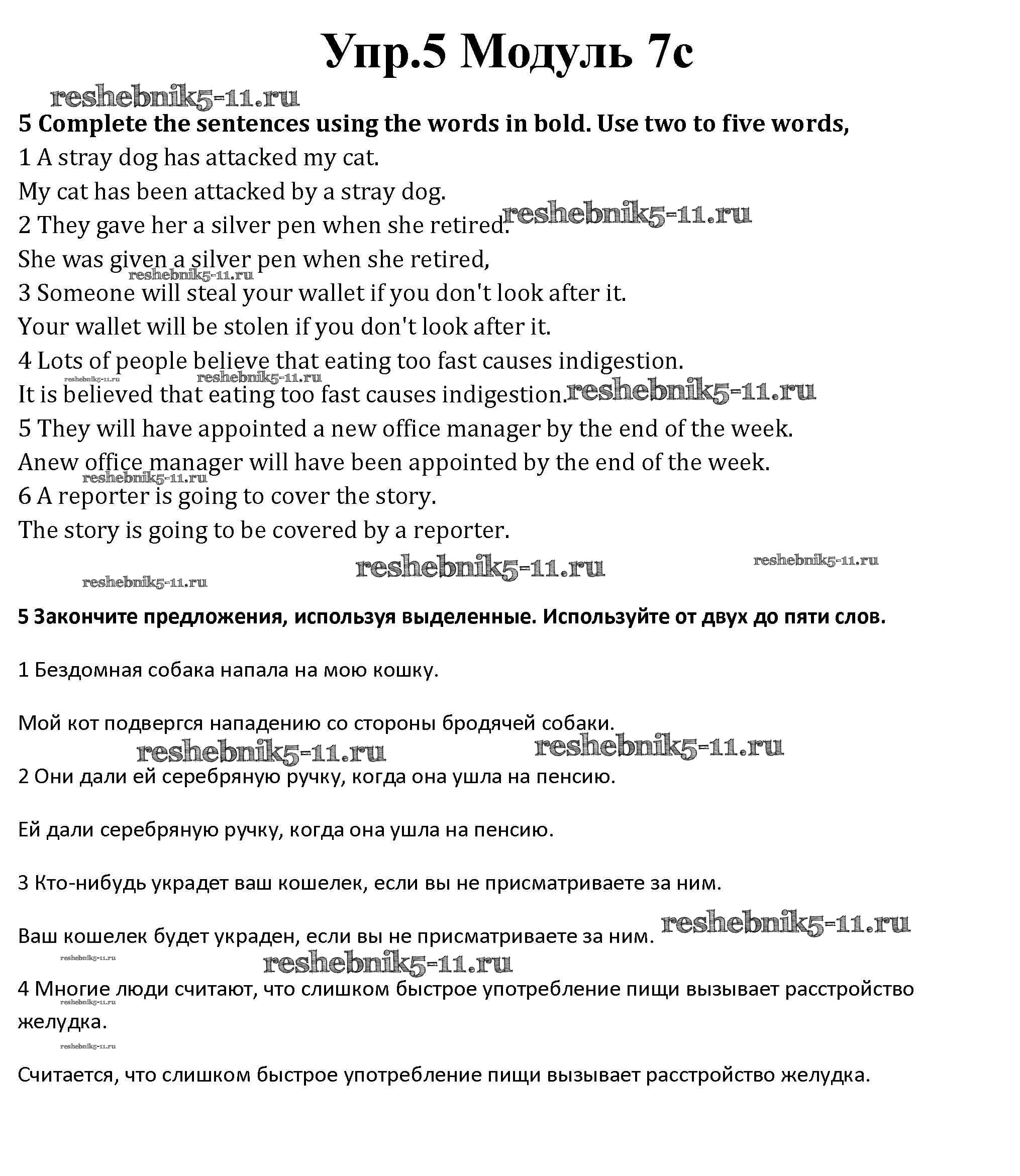 Готовая домашняя работа с ответами по Английскому языку за 10 класс Афанасьева, Дули, Михеева, Оби, Эванс Рабочая тетрадь Spotlight Базовый уровень Просвещение 2015 ФГОС - Часть 7c 5