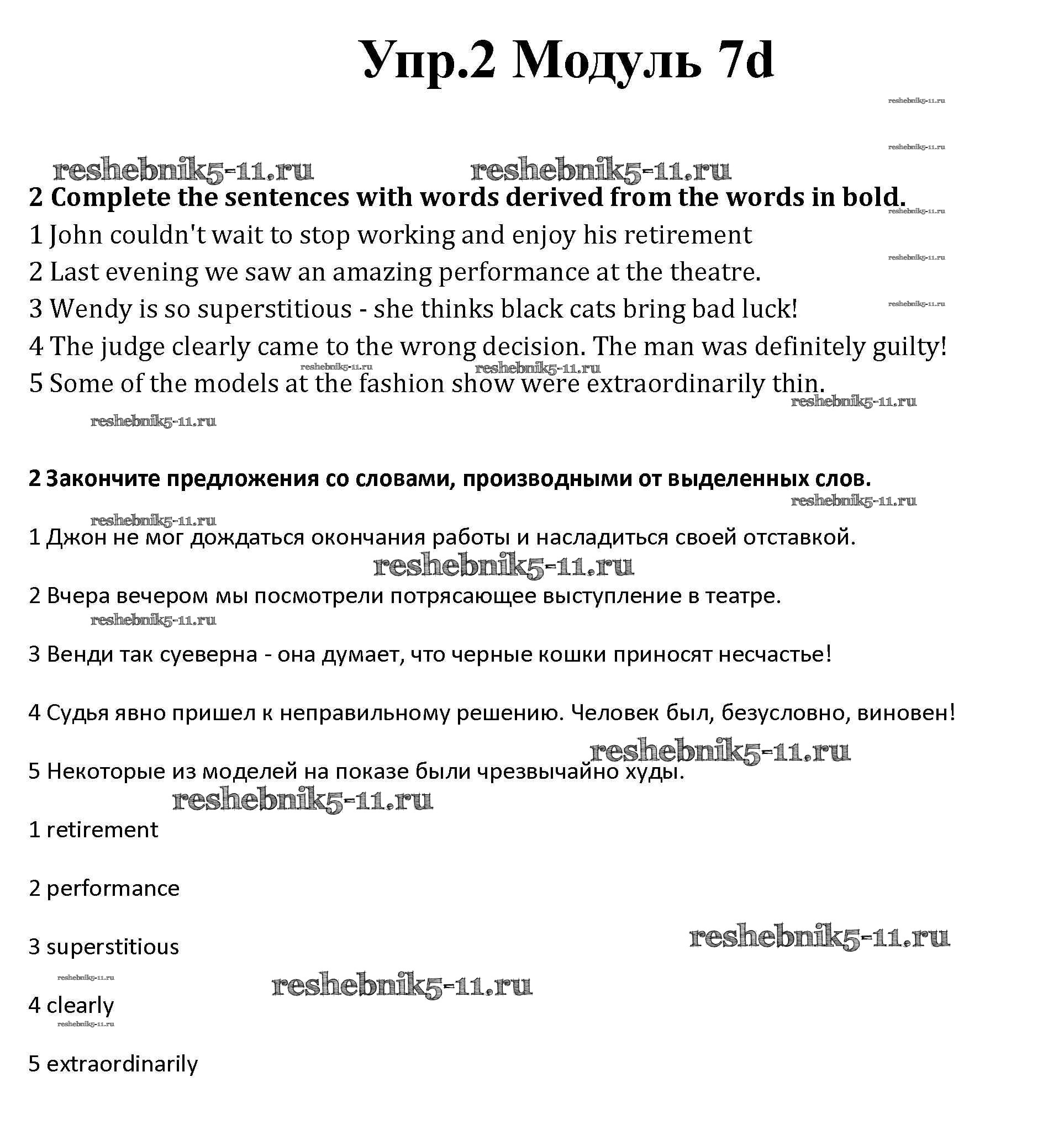 Готовая домашняя работа с ответами по Английскому языку за 10 класс Афанасьева, Дули, Михеева, Оби, Эванс Рабочая тетрадь Spotlight Базовый уровень Просвещение 2015 ФГОС - Часть 7d 2