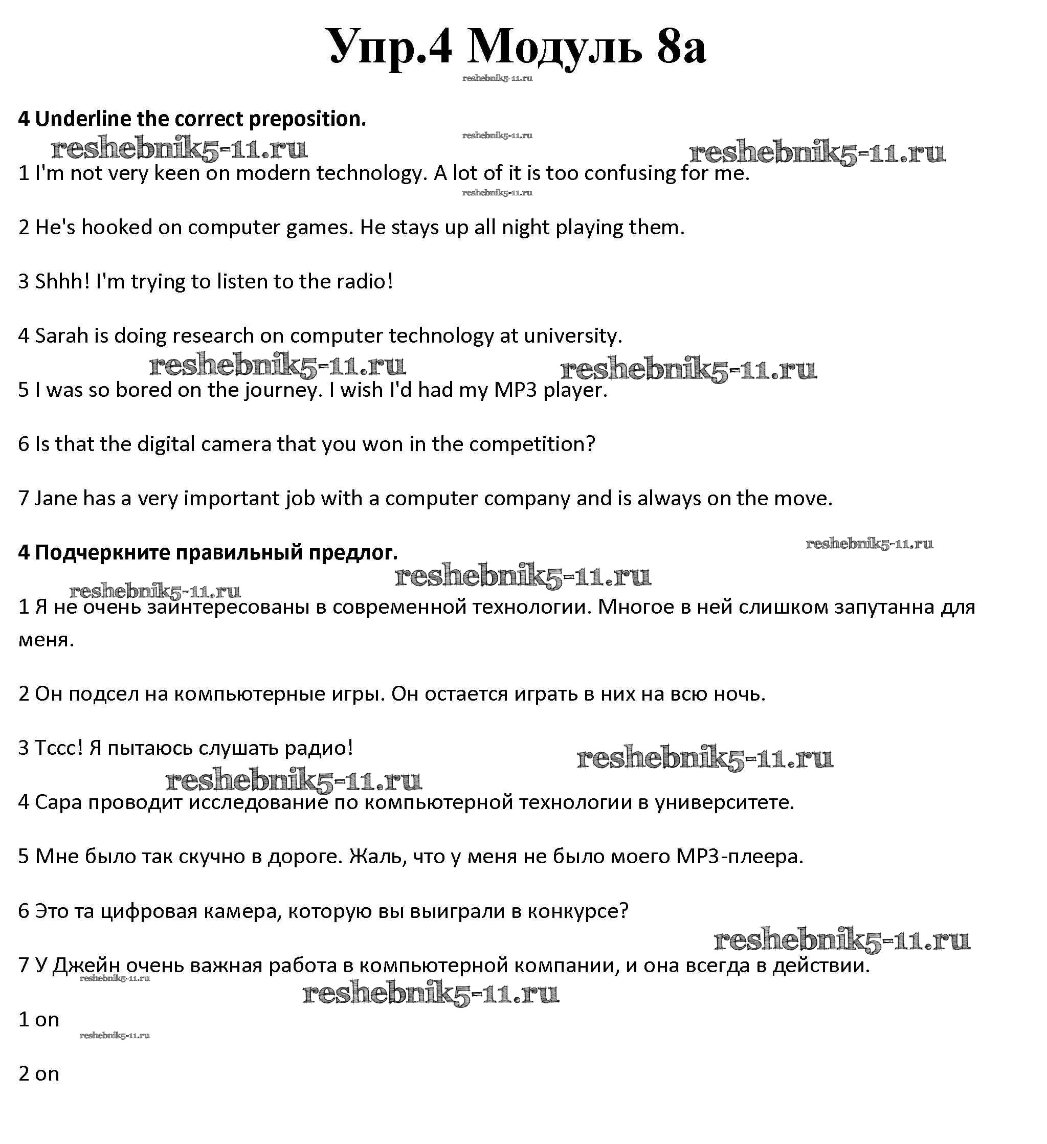Готовая домашняя работа с ответами по Английскому языку за 10 класс Афанасьева, Дули, Михеева, Оби, Эванс Рабочая тетрадь Spotlight Базовый уровень Просвещение 2015 ФГОС - Часть 8a 4