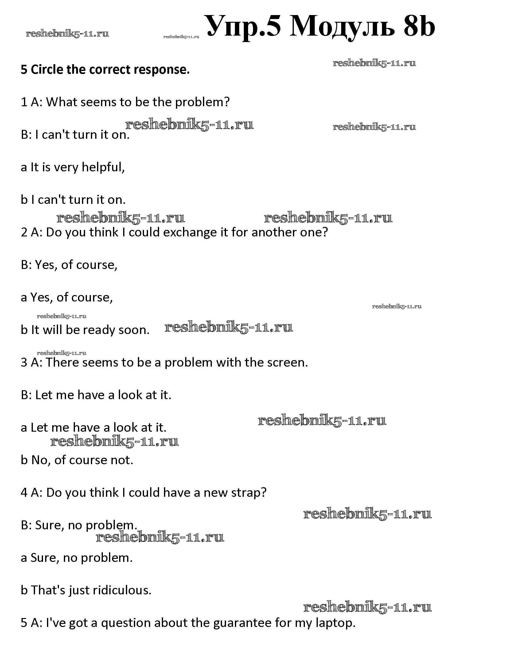 Готовая домашняя работа с ответами по Английскому языку за 10 класс Афанасьева, Дули, Михеева, Оби, Эванс Рабочая тетрадь Spotlight Базовый уровень Просвещение 2015 ФГОС - Часть 8b 5