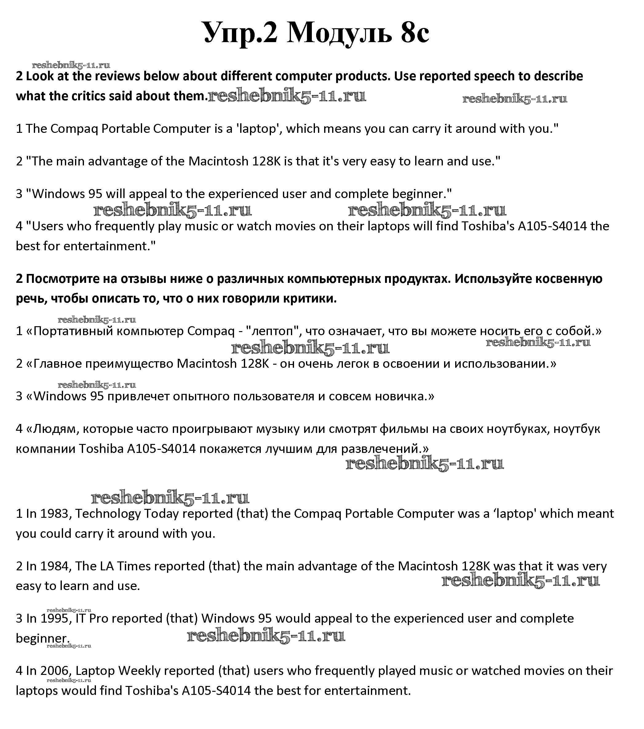Готовая домашняя работа с ответами по Английскому языку за 10 класс Афанасьева, Дули, Михеева, Оби, Эванс Рабочая тетрадь Spotlight Базовый уровень Просвещение 2015 ФГОС - Часть 8c 2